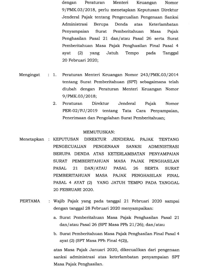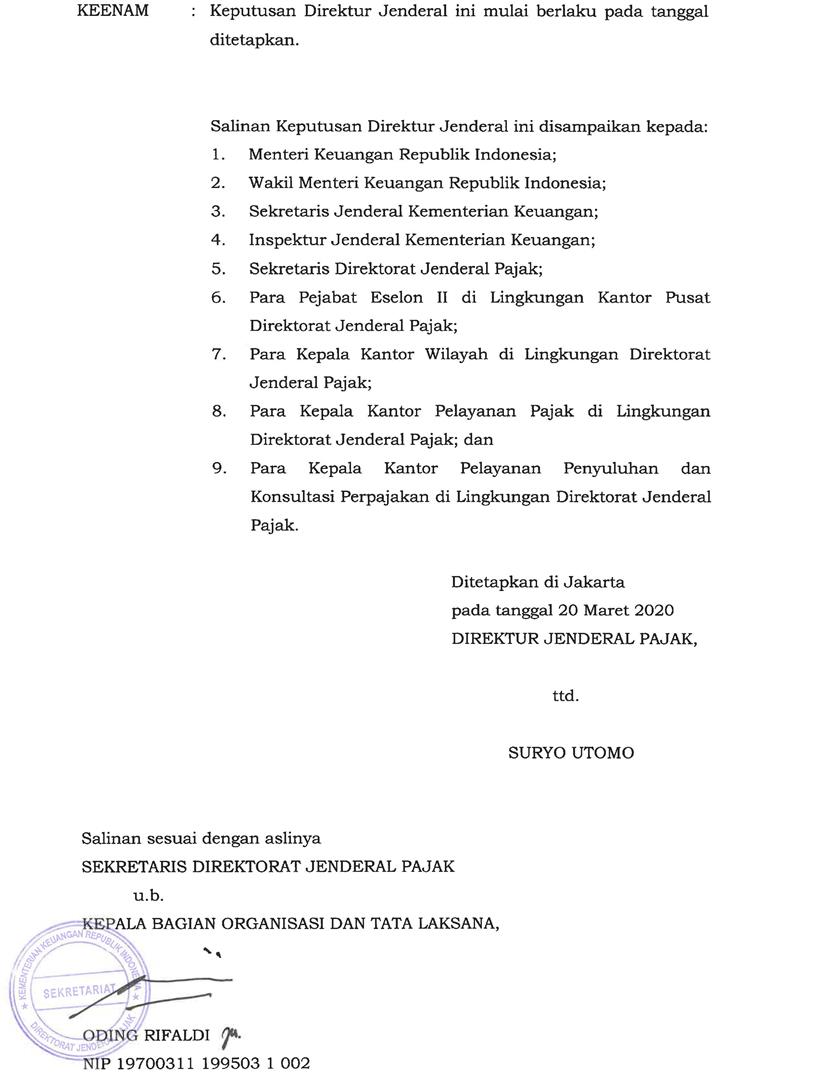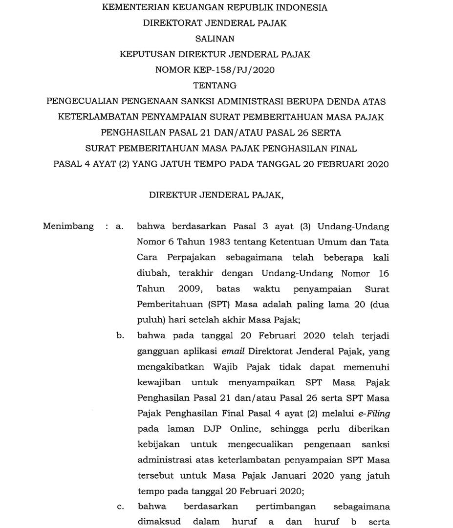 KEPUTUSAN DIREKTUR JENDERAL PAJAK NOMOR KEP - 158/PJ/2020