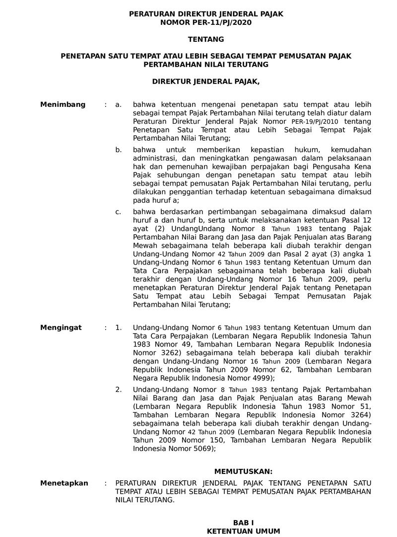 Home > Perpajakan > Peraturan > Pajak Peraturan > PERATURAN NOMOR PER-11/PJ/2020