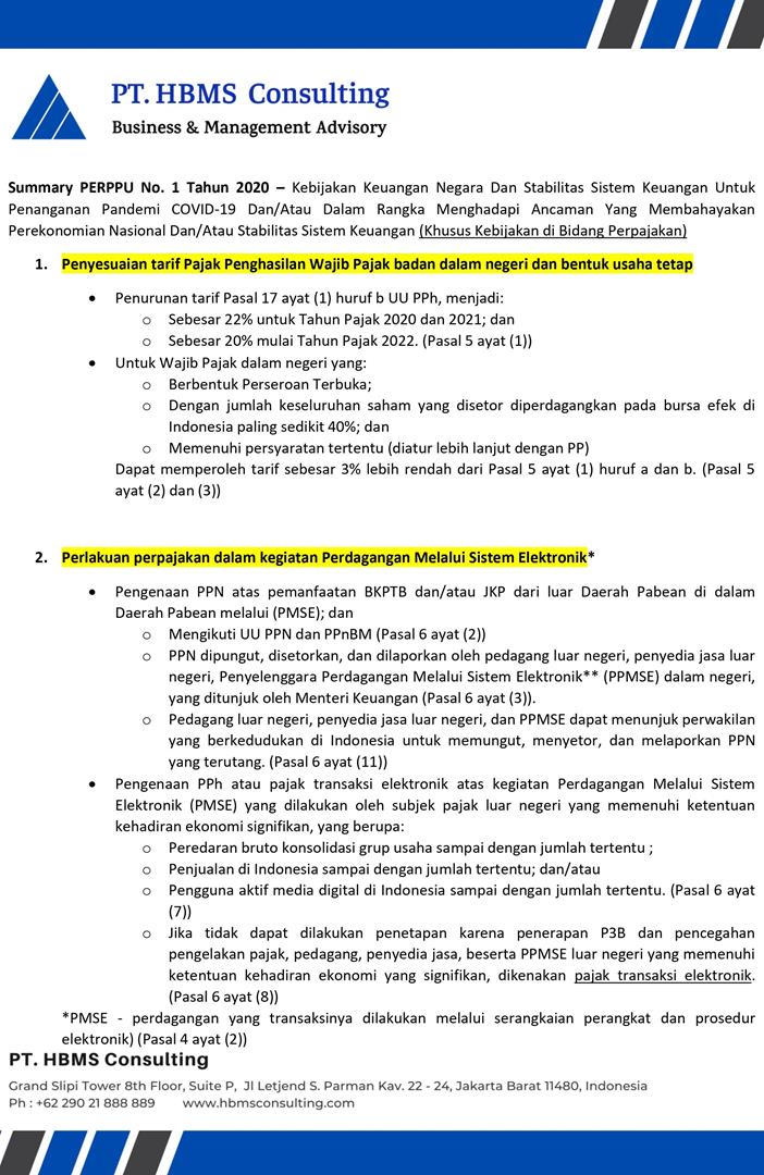 SUMMARY PERPPU NO. 1 TAHUN 2020