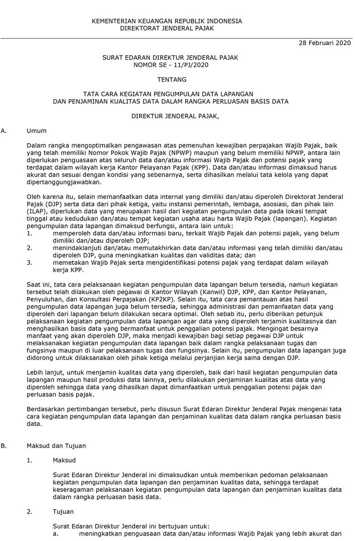SURAT EDARAN NOMOR SE - 11/PJ/2020