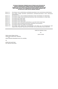 Keputusan Pencabutan Izin Menyelenggarakan Pembukuan dengan Menggunakan Bahasa Inggris dan Satuan Mata Uang Dolar Amerika Serikat bagi Wajib Pajak sebagaimana dimaksud dalam Pasal 5 ayat (1) atau Wajib Pajak badan tertentu sebagaimana dimaksud dalam Pasal 7 ayat (2) sesuai dengan contoh format tercantum dalam Lampiran huruf D yang merupakan bagian tidak terpisahkan dari Peraturan Direktur Jenderal ini,