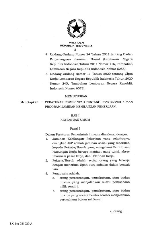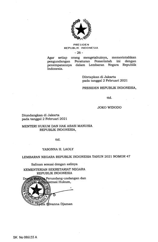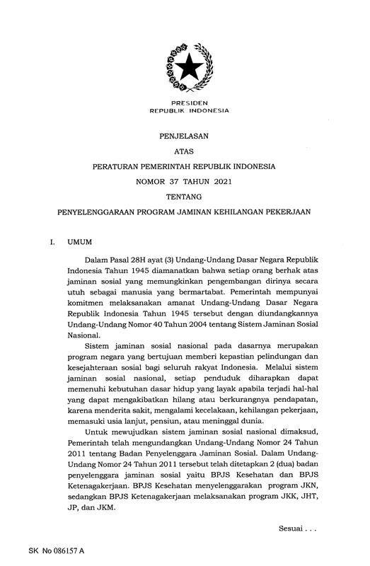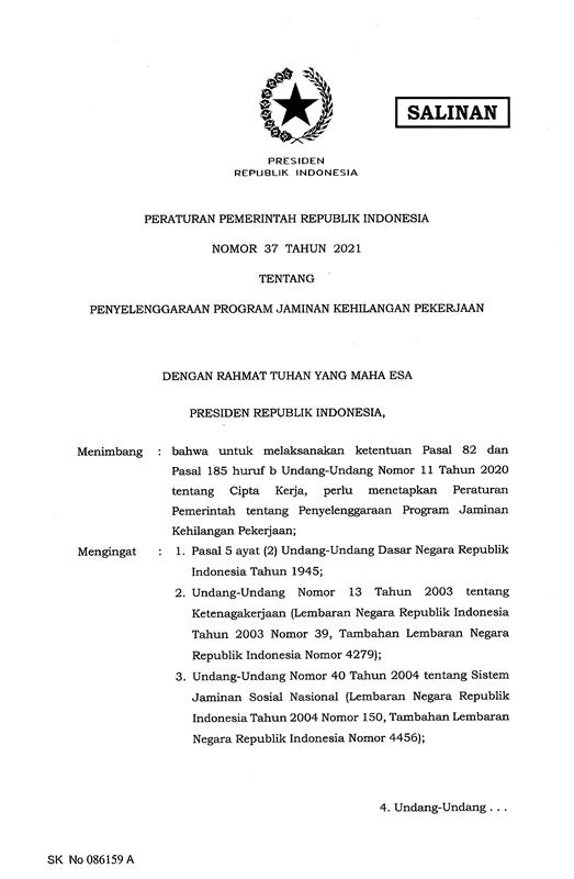 PERATURAN PEMERINTAH REPUBLIK INDONESIA NOMOR 37 TAHUN 2021