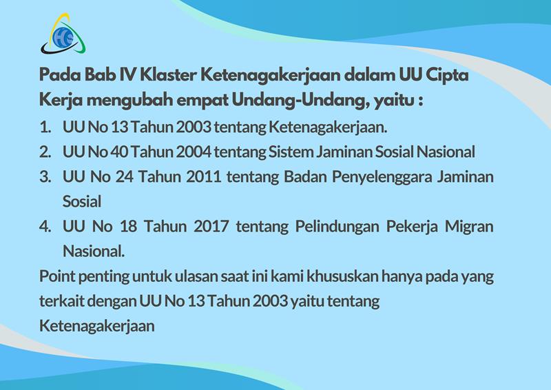 Summary UU Nomor 11 Tahun 2020 Klaster Ketenagakerjaan UU Nomor 11 Tahun 2020 : klaster Ketenagakerjaan
