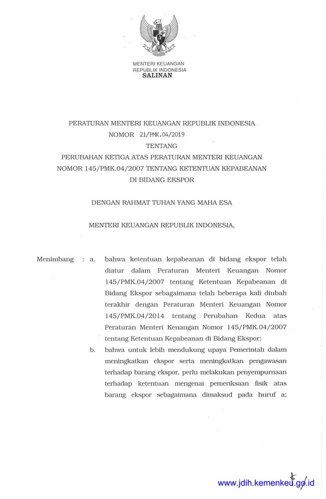 PERATURAN MENTERI KEUANGAN NOMOR 21/PMK.04/2019