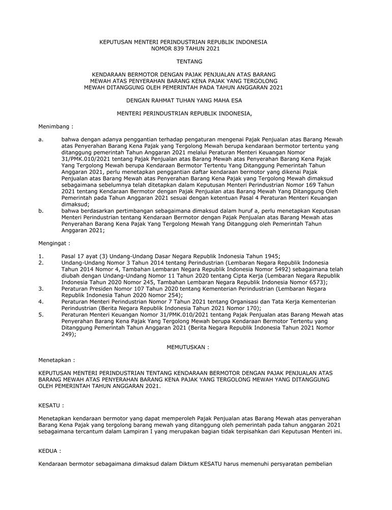 KEPUTUSAN MENTERI KEUANGAN REPUBLIK INDONESIA NOMOR 839 TAHUN 2021
