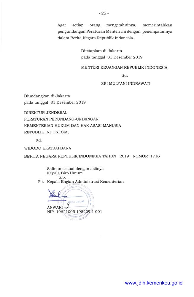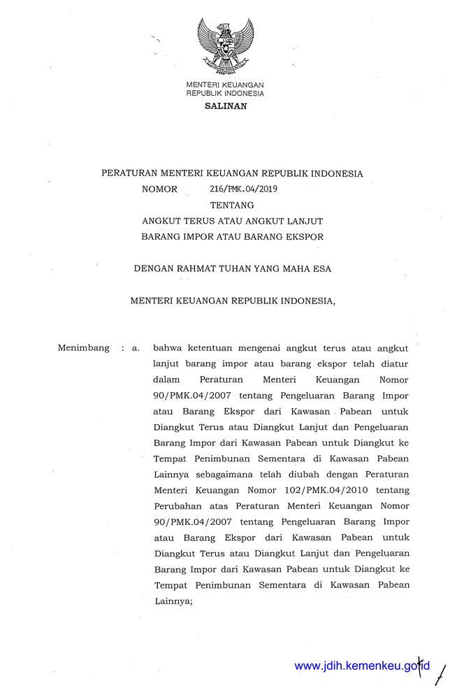PERATURAN MENTERI KEUANGAN REPUBLIK INDONESIA NOMOR 216/PMK.04/2019