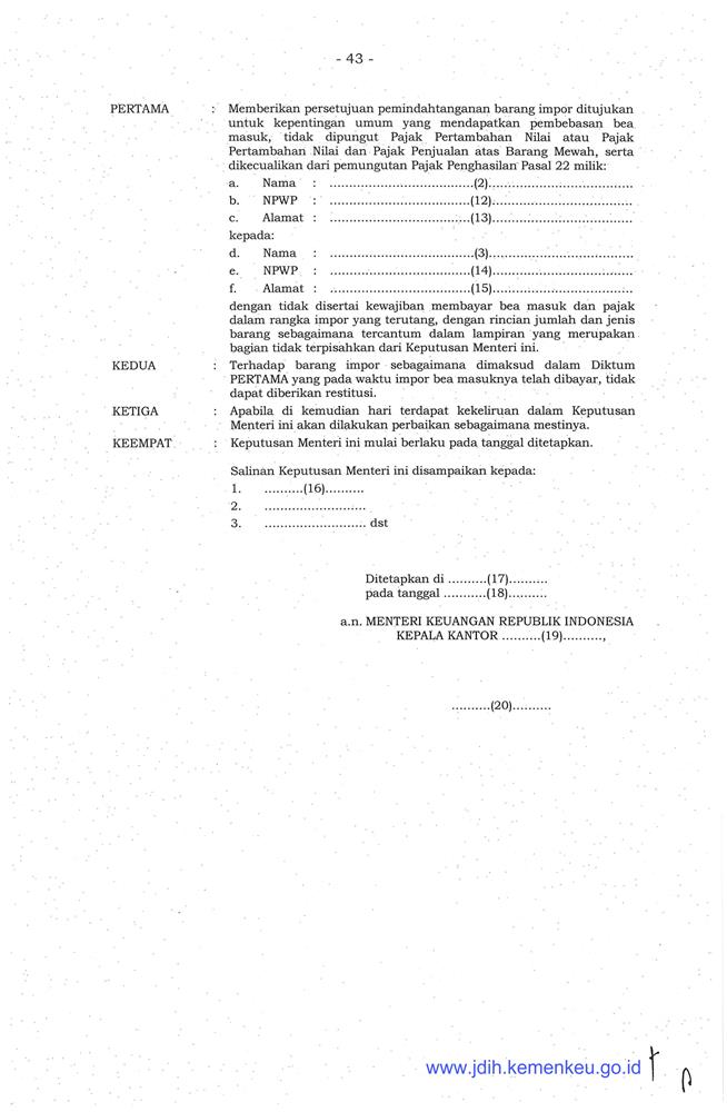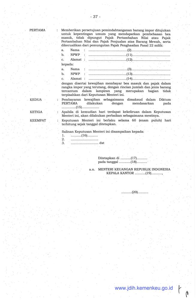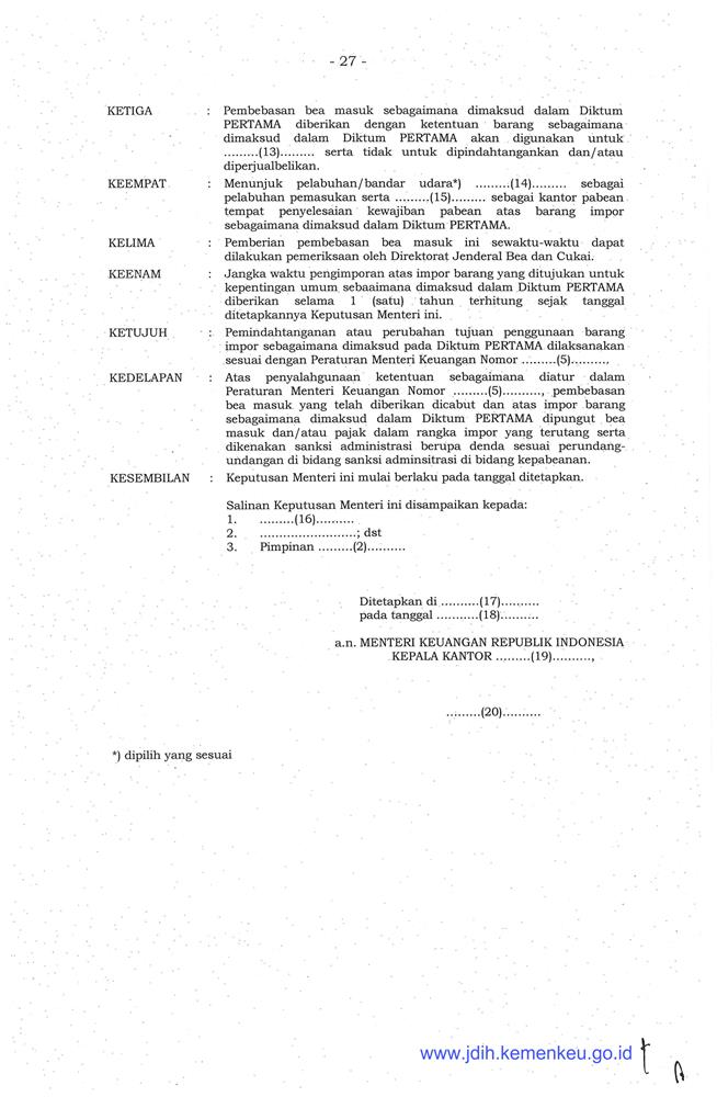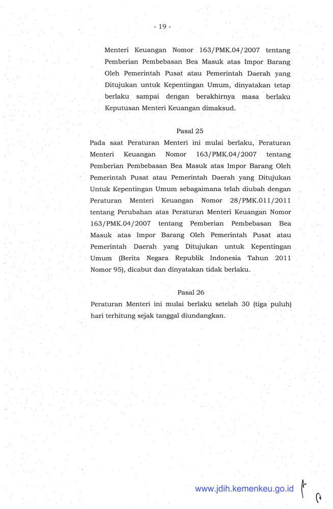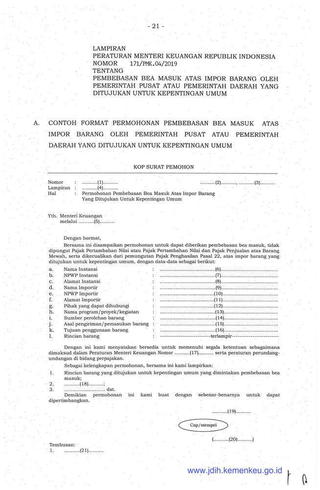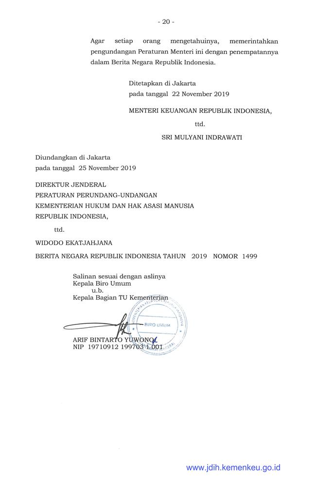 PERATURAN MENTERI KEUANGAN REPUBLIK INDONESIA NOMOR 171/PMK.04/2019