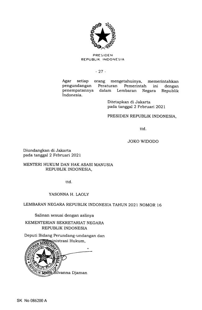 PERATURAN PEMERINTAH REPUBLIK INDONESIA NOMOR 6 TAHUN 2021