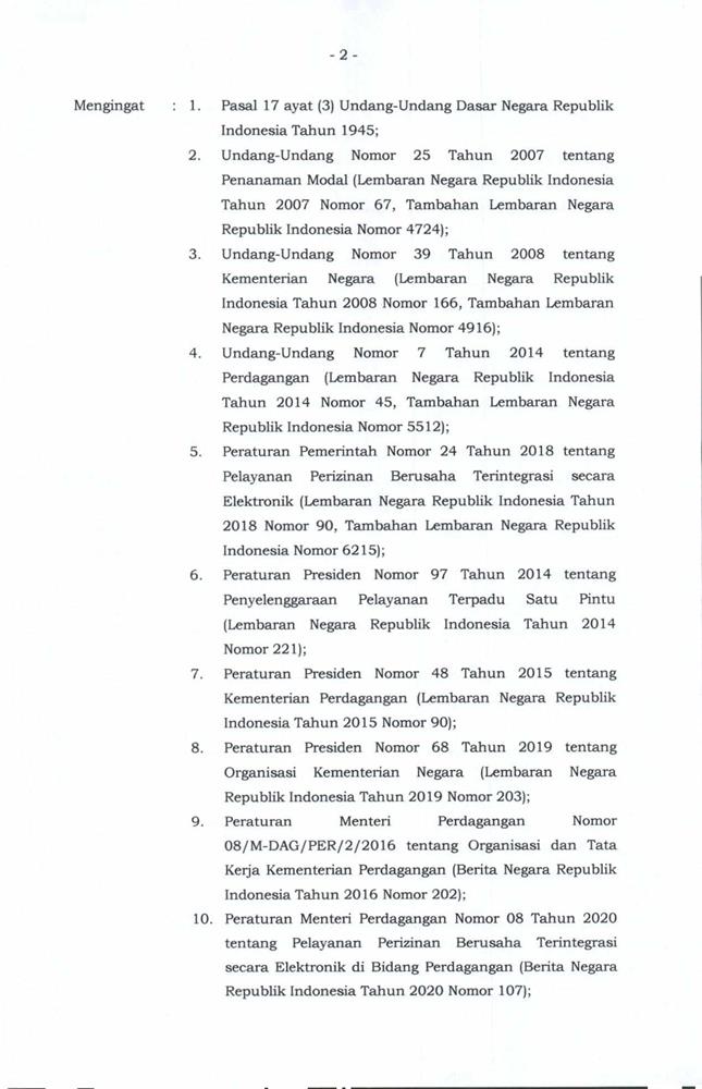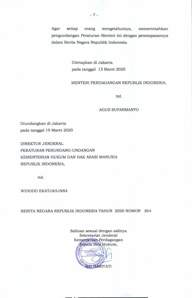 PERATURAN MENTERI PERDAGANGAN REPUBLIK NOMOR 22 TAHUN 2020