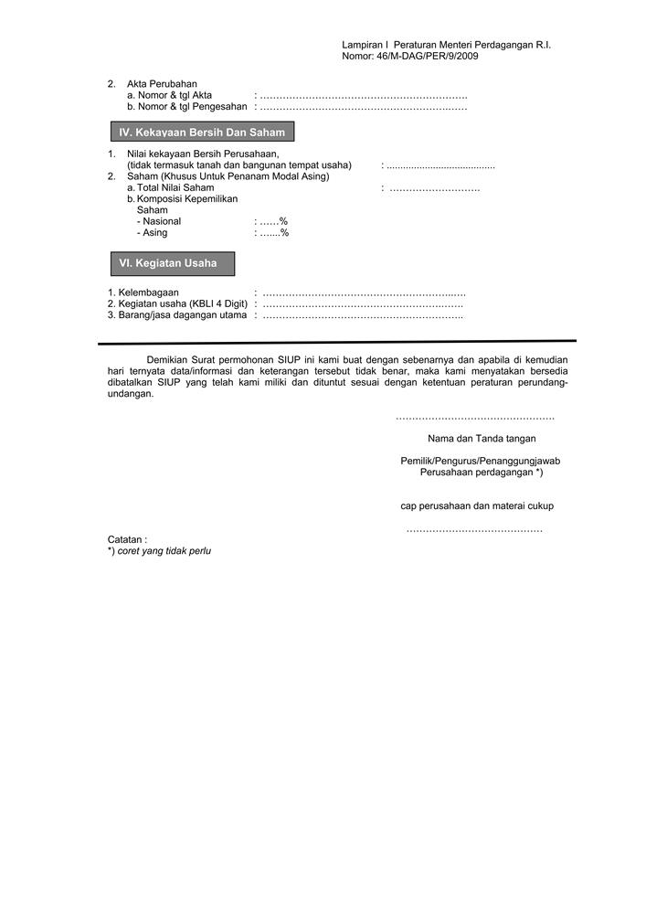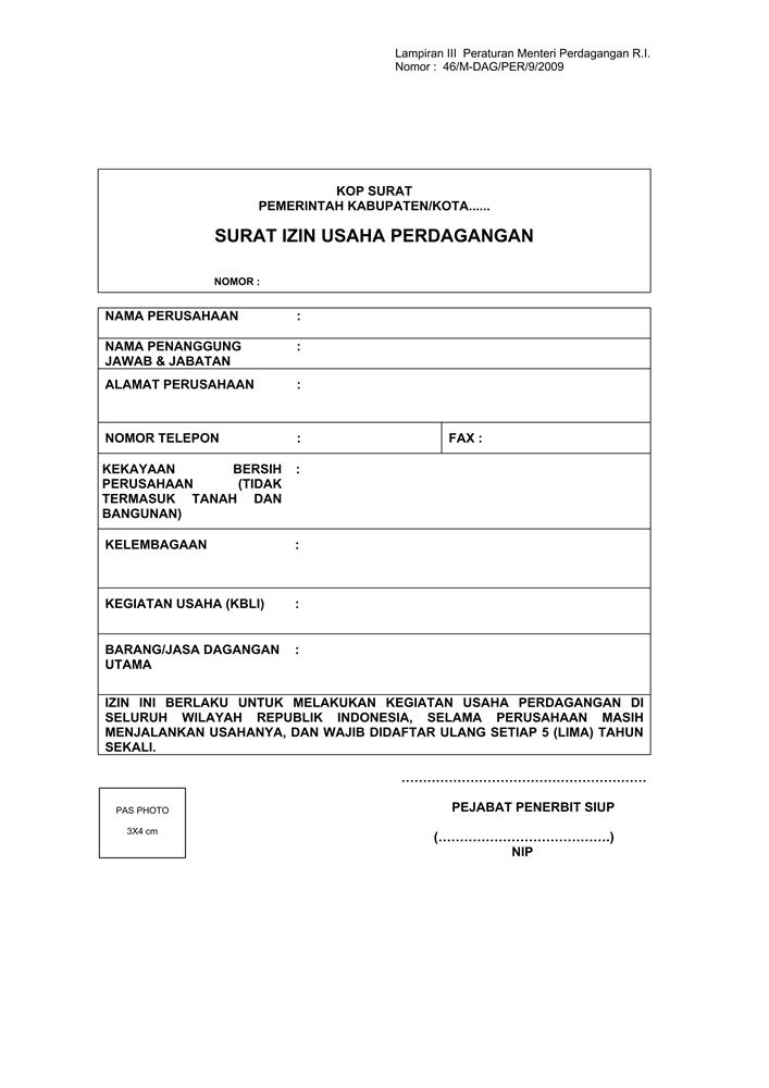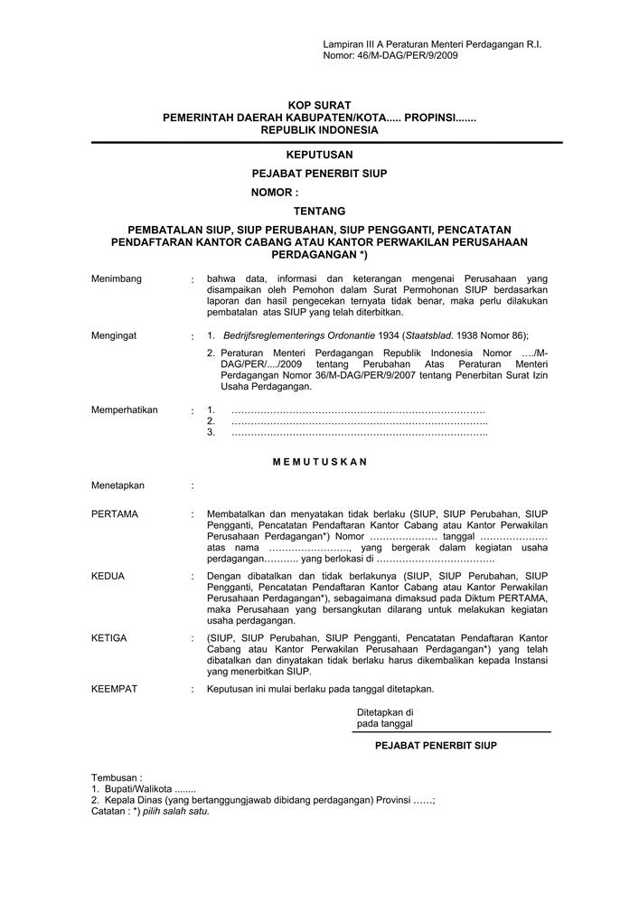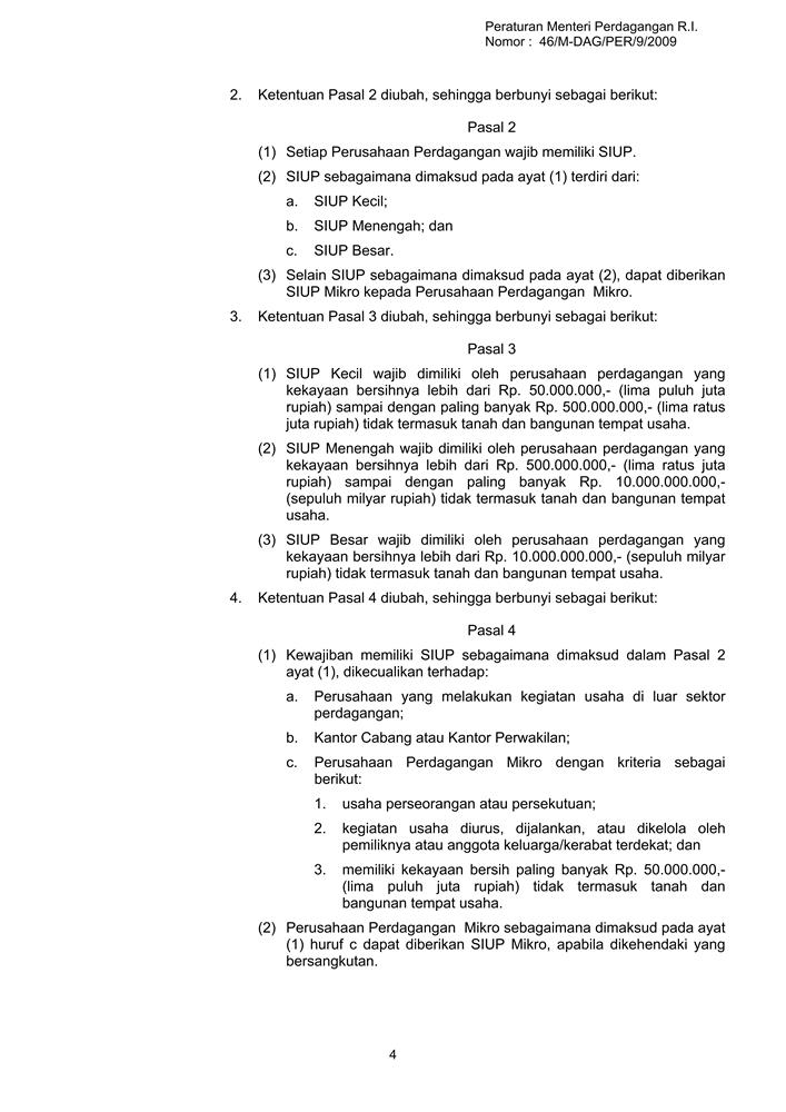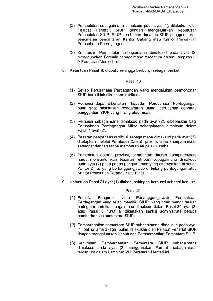 PERATURAN MENTERI PERDAGANGAN REPUBLIK INDONESIA NOMOR 46/M-DAG/PER/9/2009