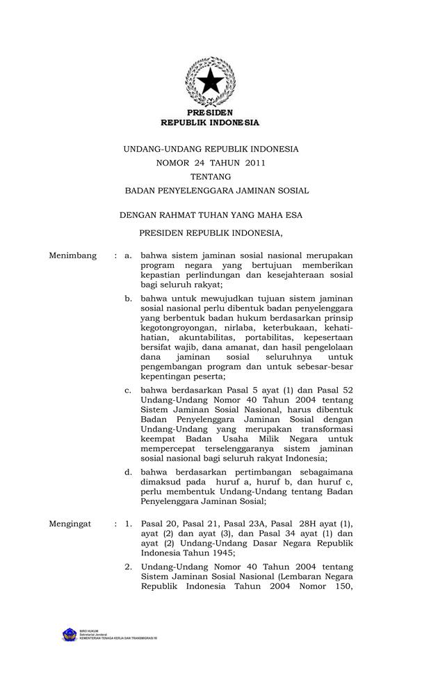 UNDANG-UNDANG REPUBLIK INDONESIA NOMOR 24 TAHUN 2011