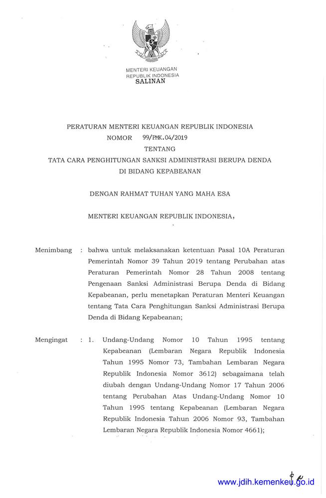 PERATURAN MENTERI KEUANGAN NOMOR 99/PMK.04/2019