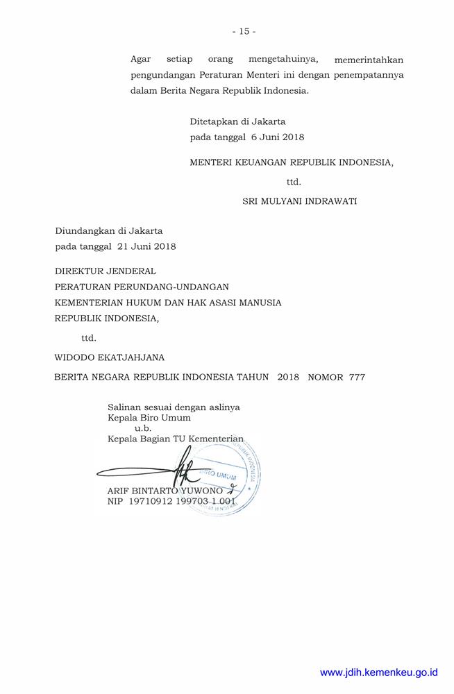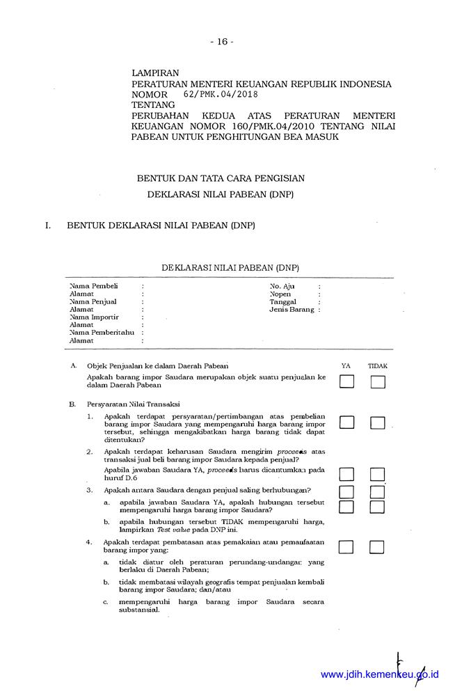 PERATURAN MENTERI KEUANGAN NOMOR 62/PMK.04/2018