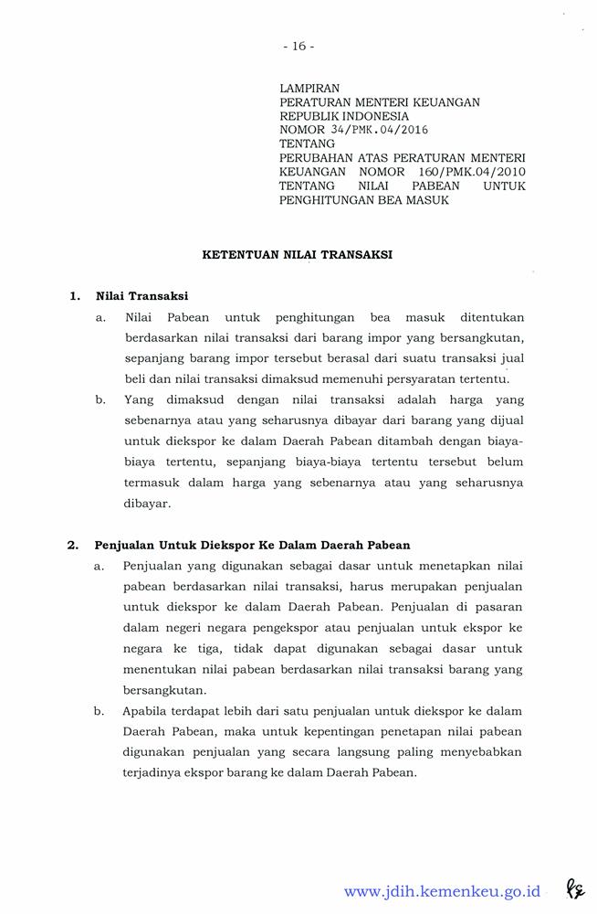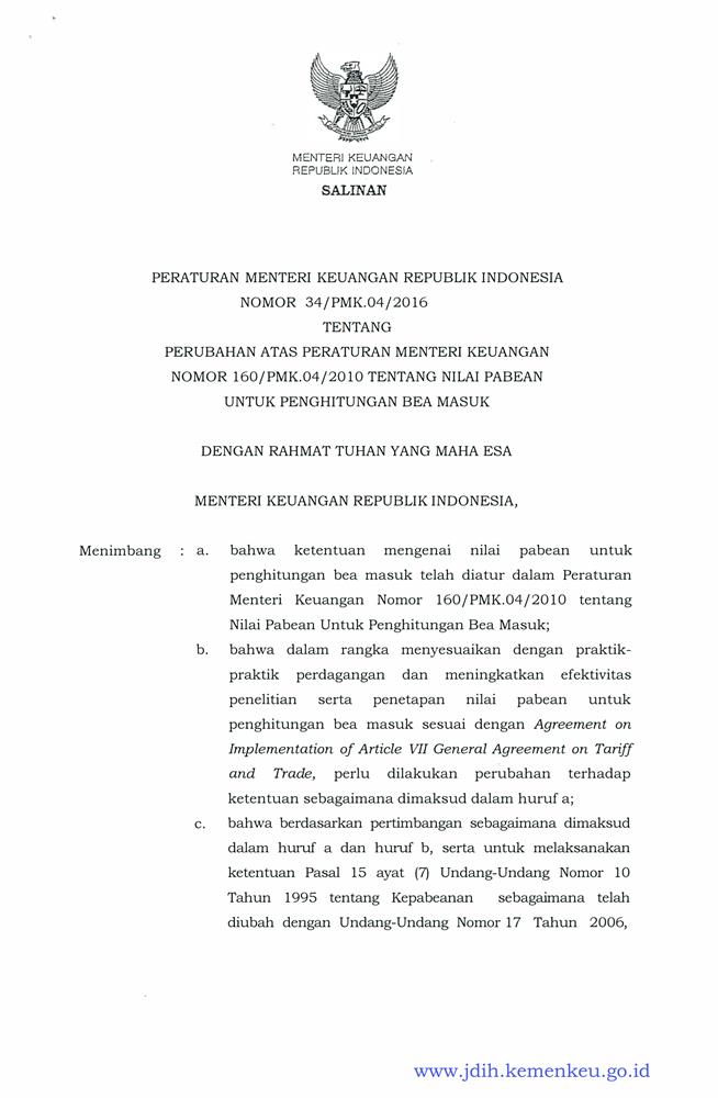 PERATURAN MENTERI KEUANGAN NOMOR 34/PMK.04/2016