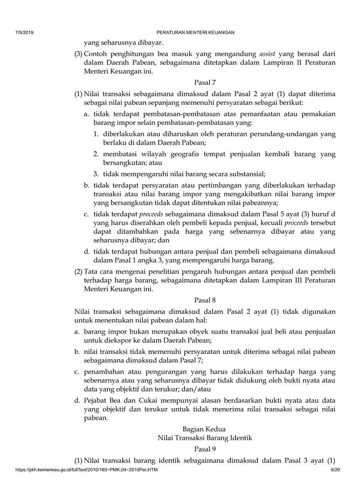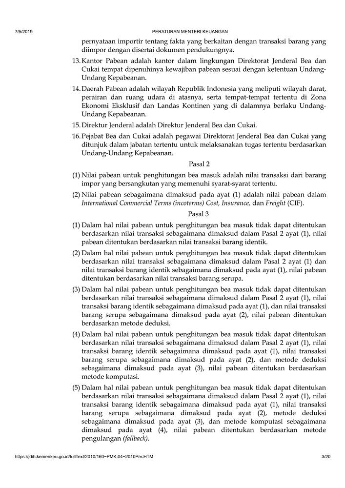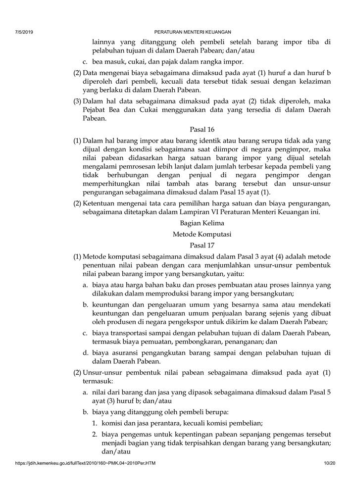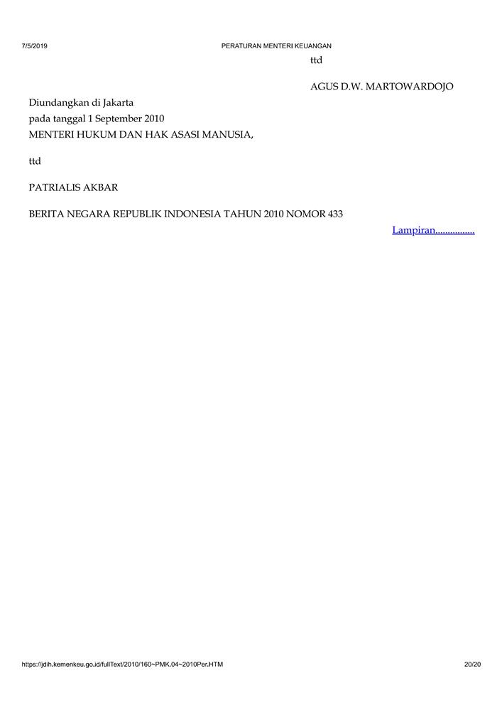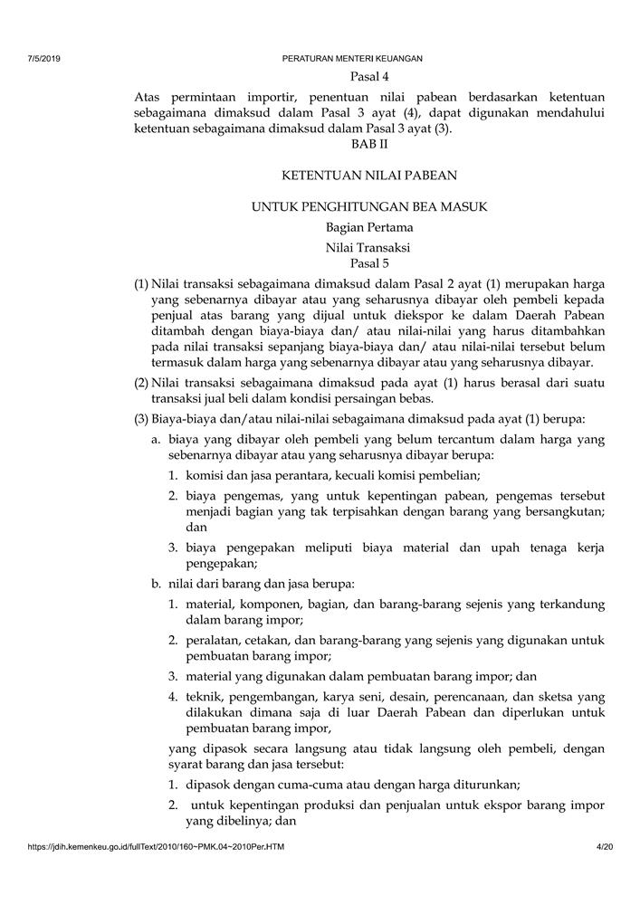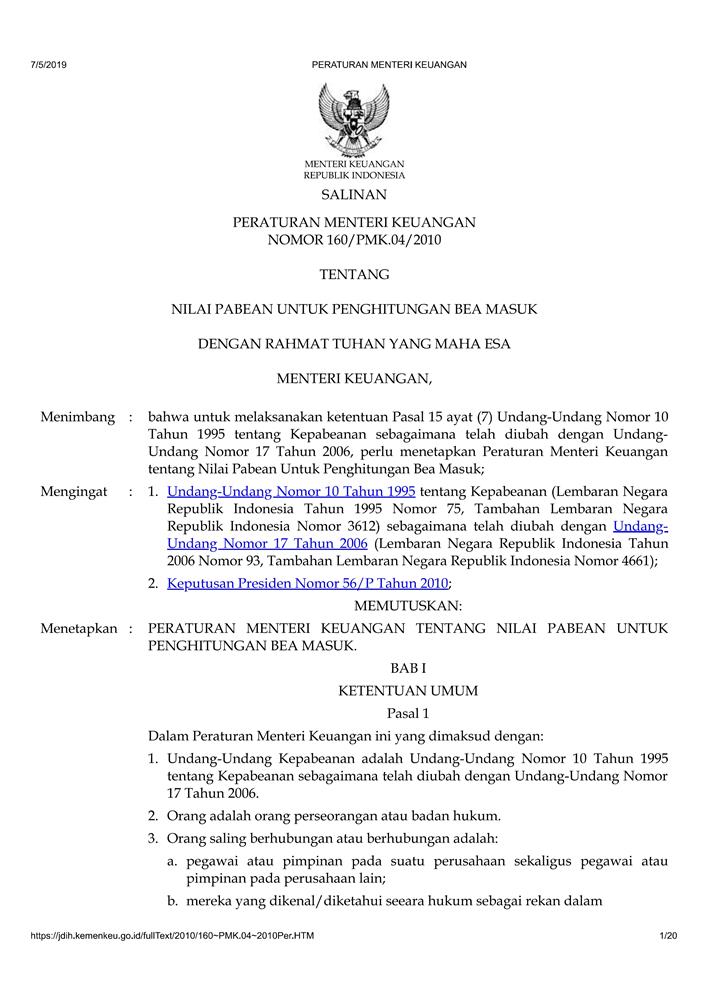 PERATURAN MENTERI KEUANGAN NOMOR 160/PMK.04/2010