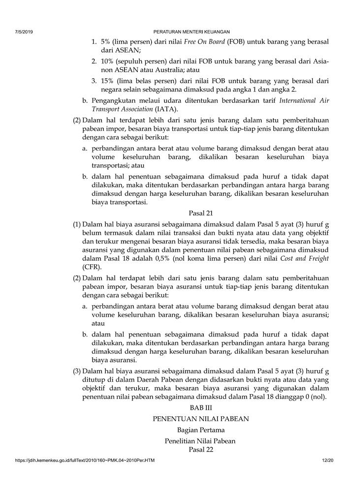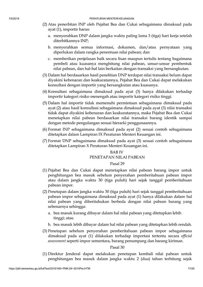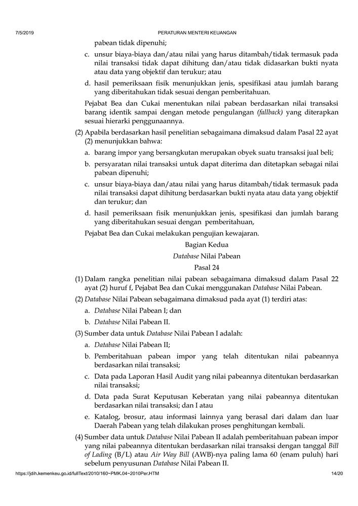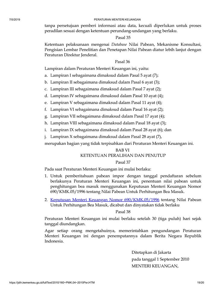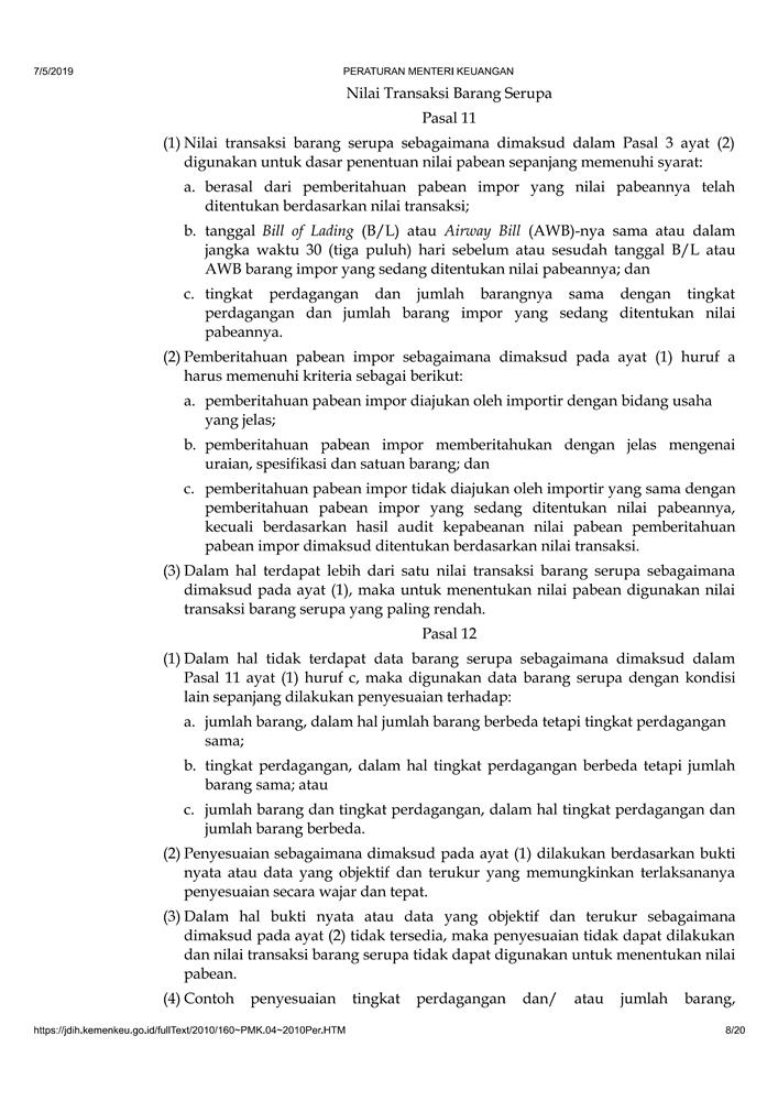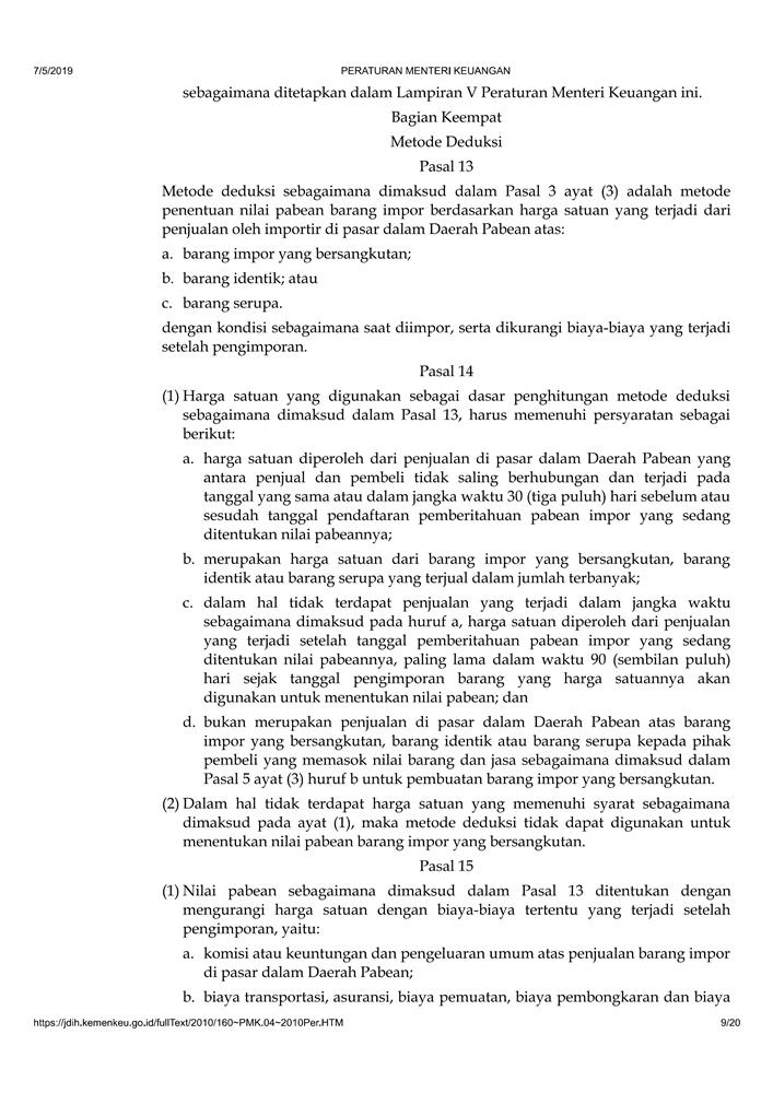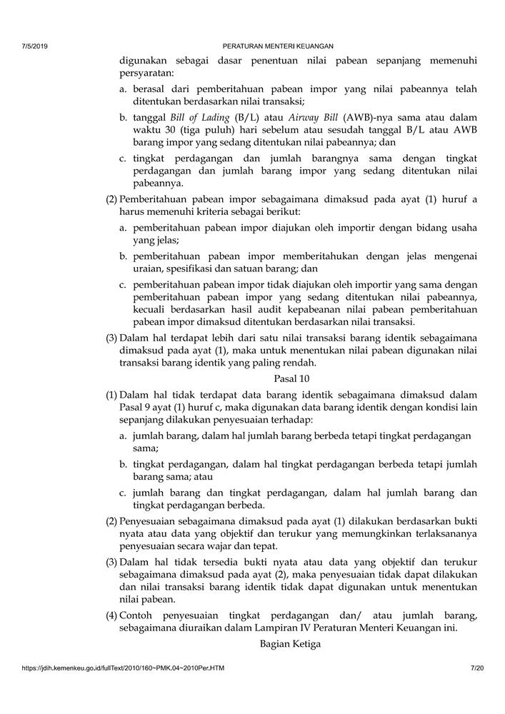 PERATURAN MENTERI KEUANGAN NOMOR 160/PMK.04/2010