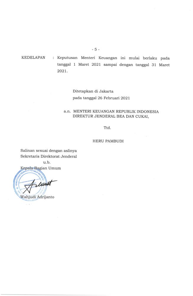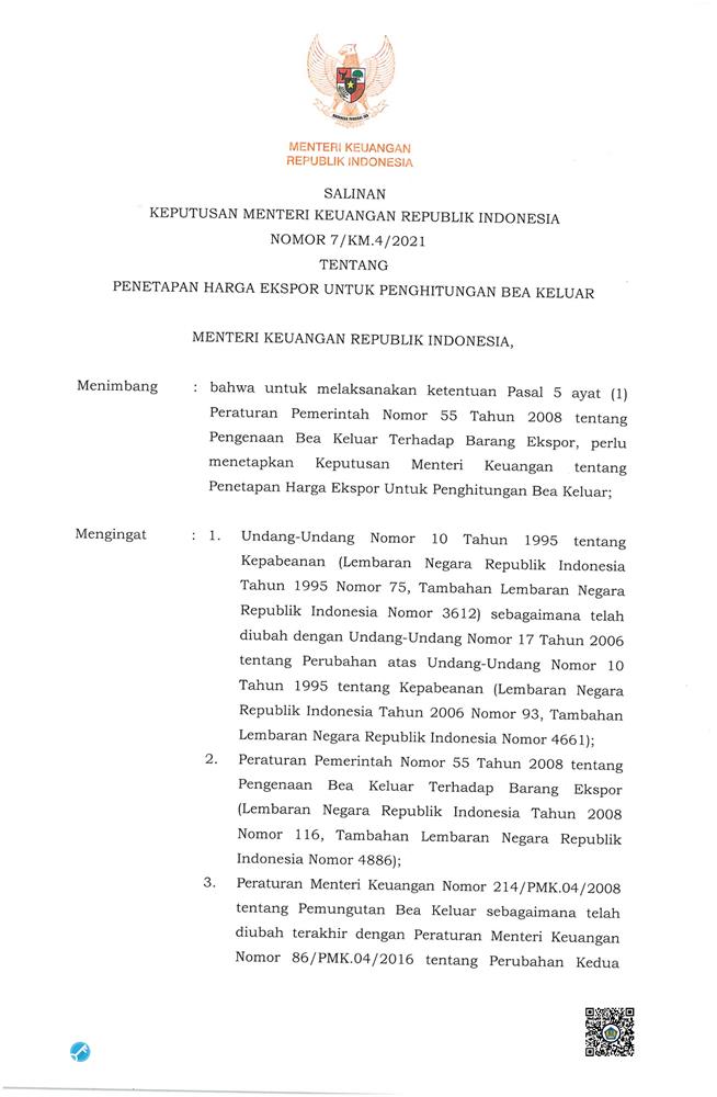 KEPUTUSAN MENTERI KEUANGAN REPUBLIK INDONESIA NOMOR 7/KM.04/2021