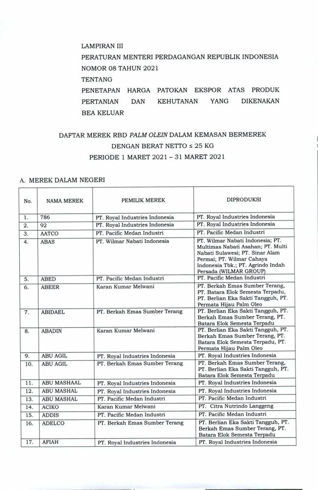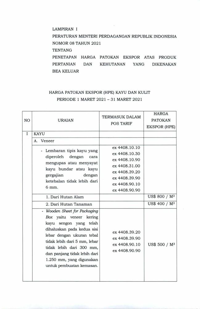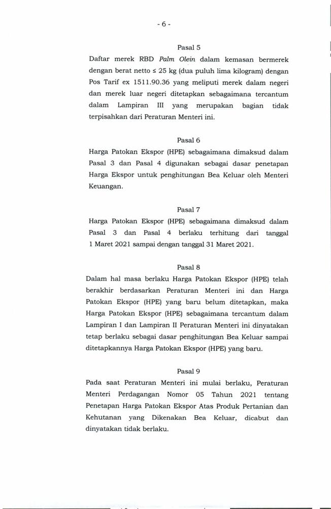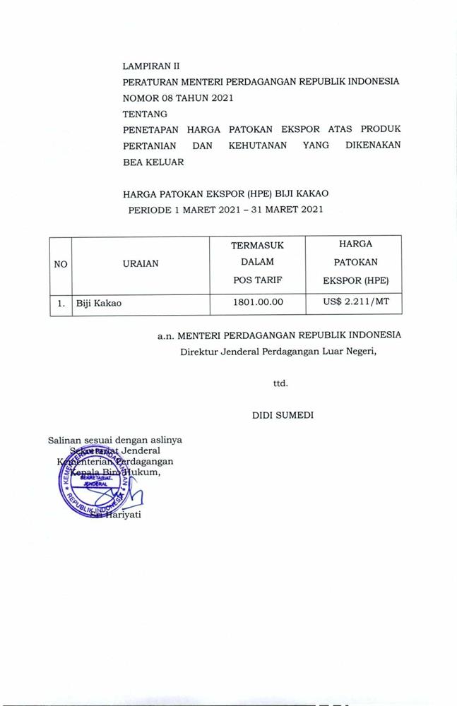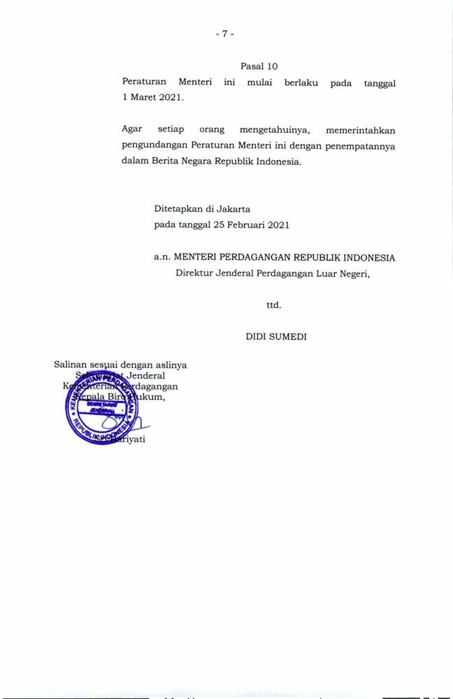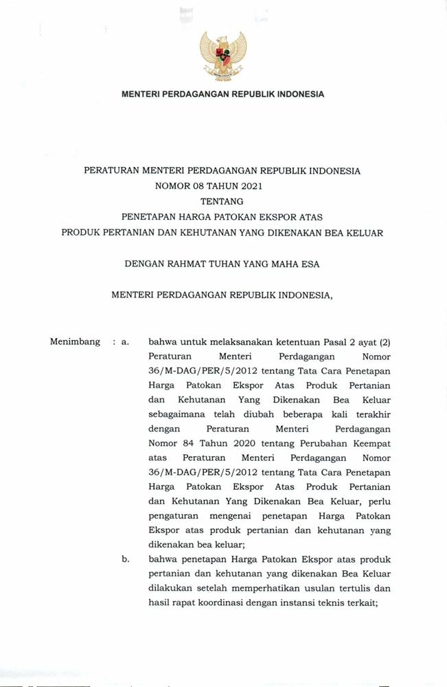 PERATURAN MENTERI PERDAGANGAN REPUBLIK INDONESIA NOMOR 8 TAHUN 2021