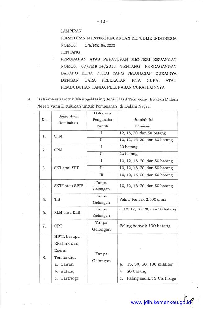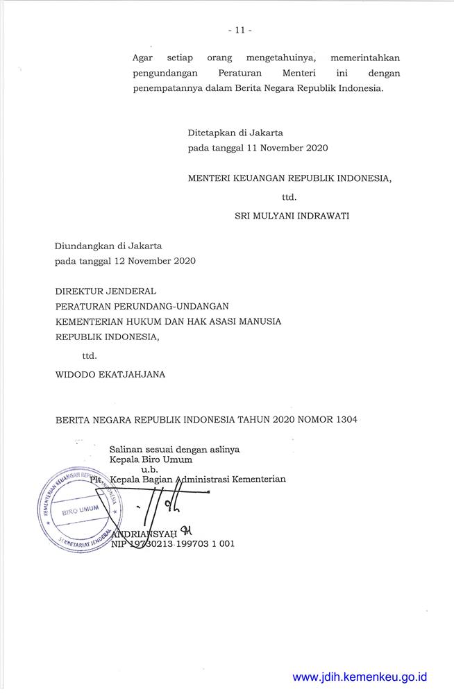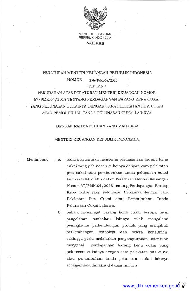PERATURAN MENTERI KEUANGAN REPUBLIK INDONESIA NOMOR 176/PMK.04/2020