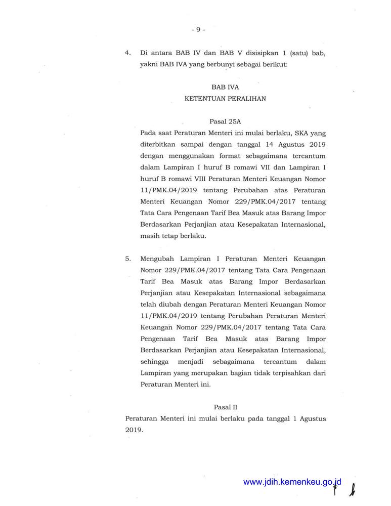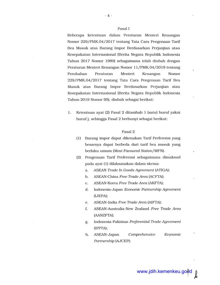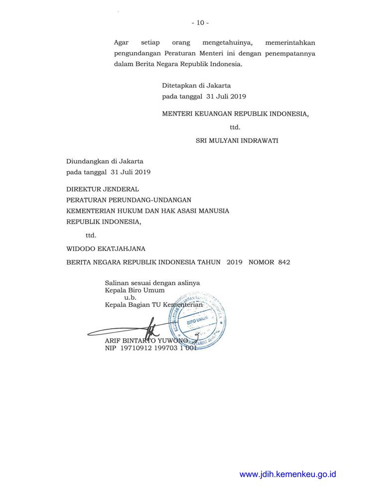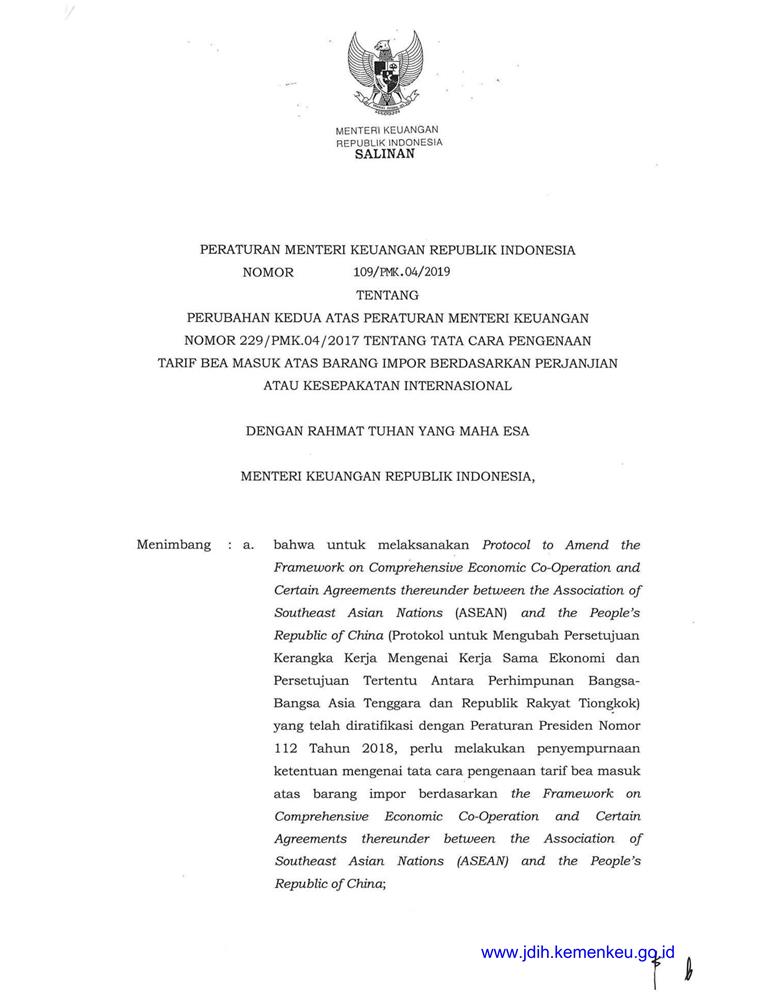 PERATURAN MENTERI KEUANGAN REPUBLIK INDONESIA NOMOR 109/PMK.04/2019