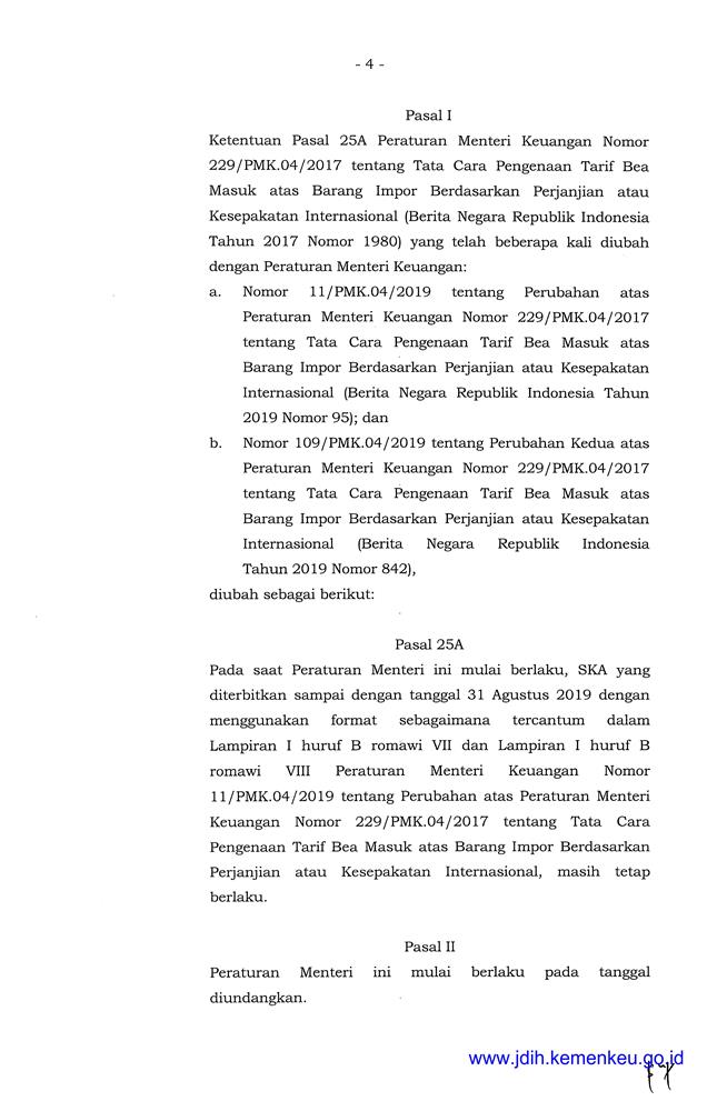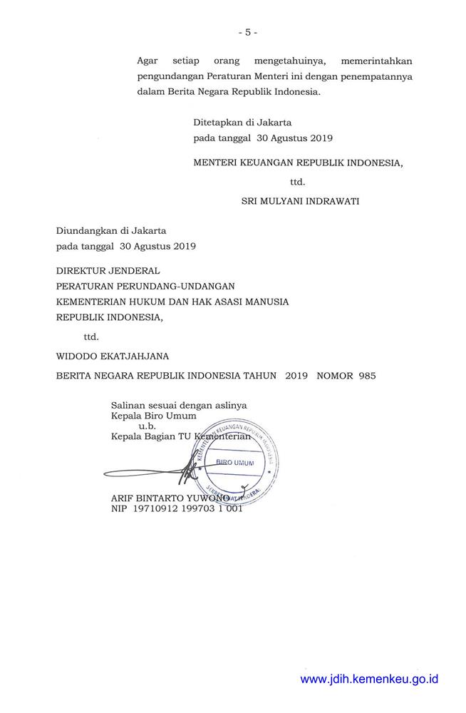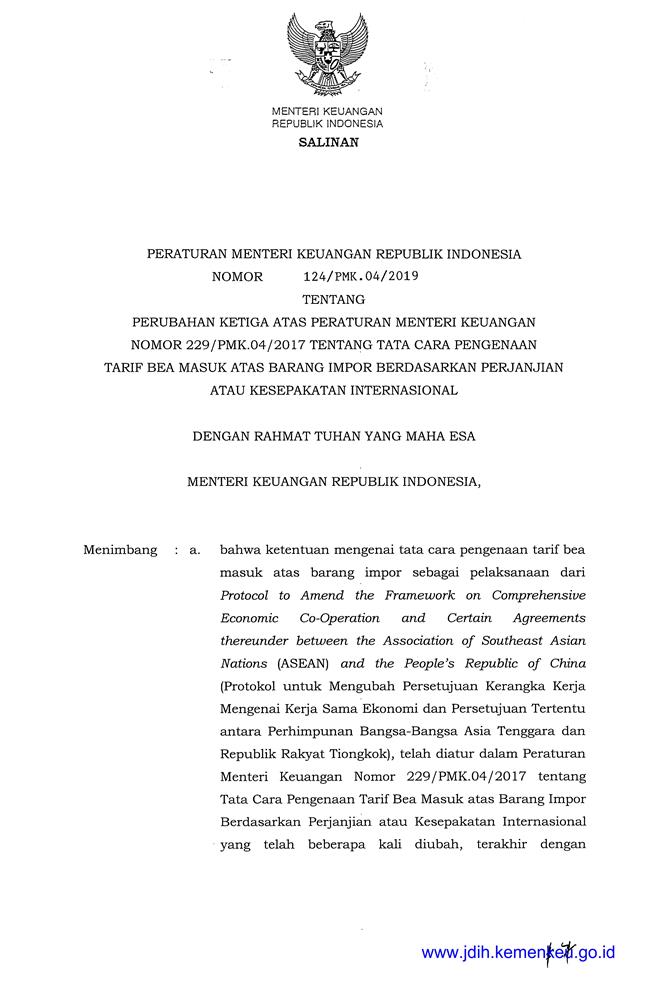 PERATURAN MENTER! KEUANGAN REPUBLIK INDONESIA NOMOR 124/PMK.04/2019