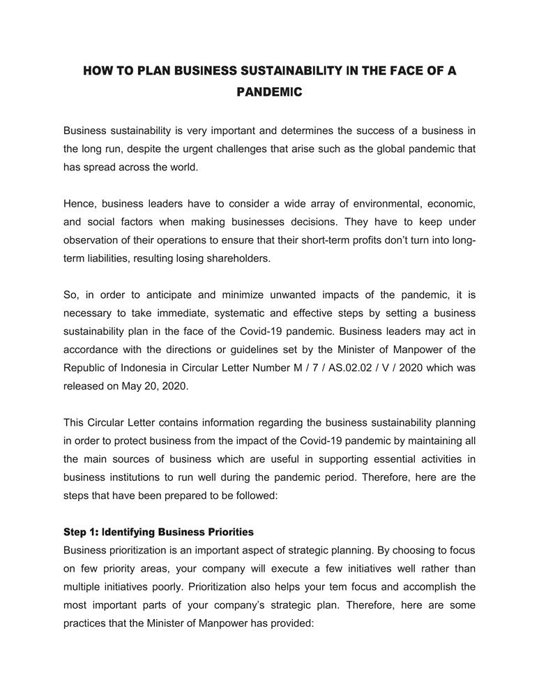 How To Plan Business Sustainability In The Face Of A Pandemic
