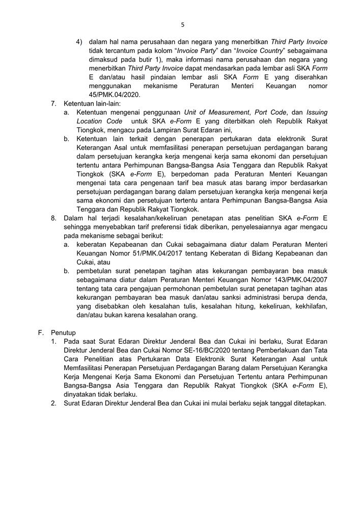 SURAT EDARAN NOMOR SE-21/BC/2020