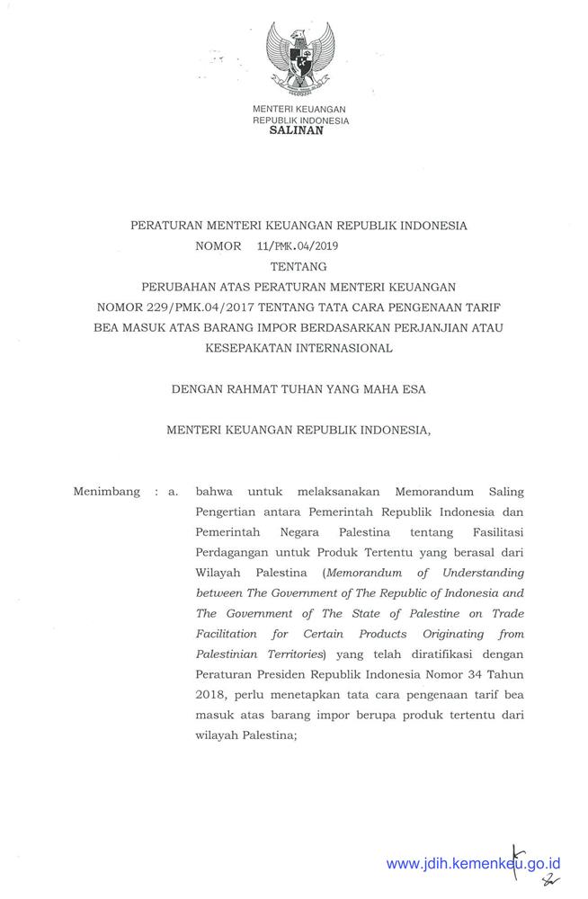 PERATURAN MENTERI KEUANGAN REPUBLIK INDONESIA NOMOR 11/PMK.04/2019