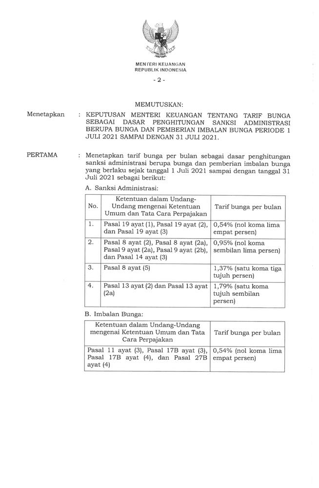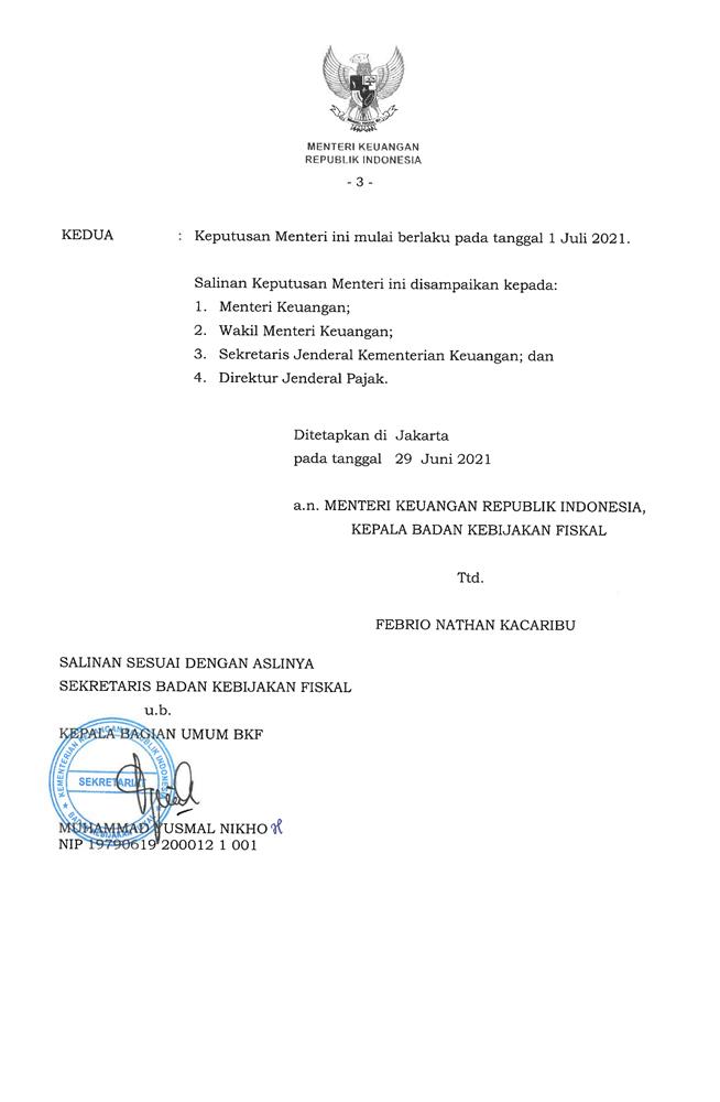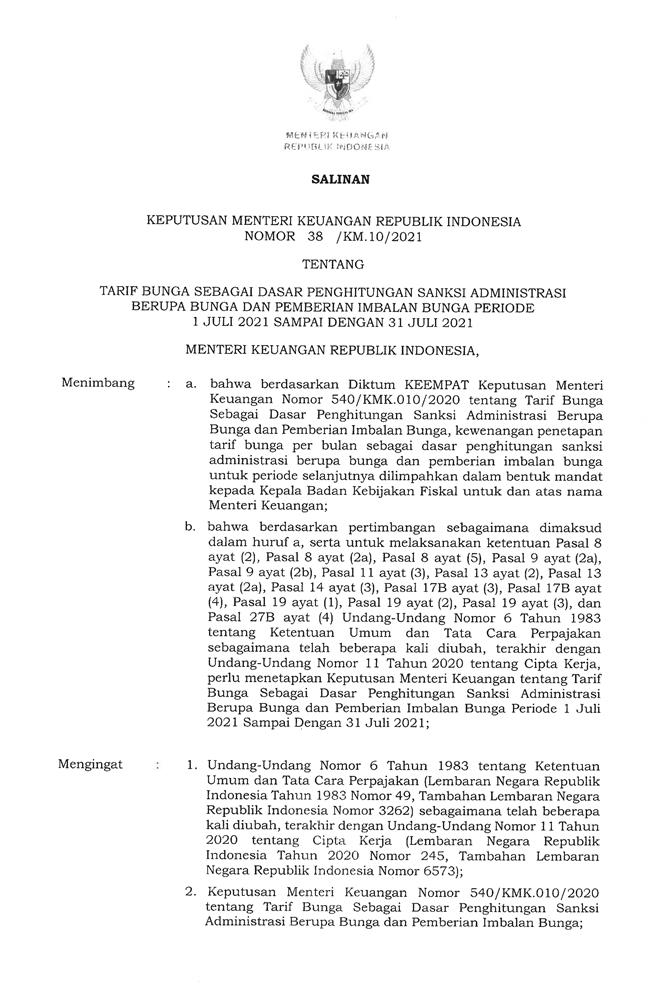 KEPUTUSAN MENTERI KEUANGAN REPUBLIK INDONESIA NOMOR 38/KM.10/2021