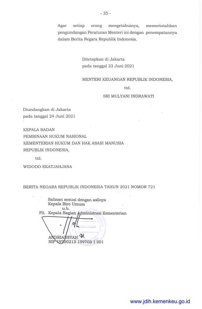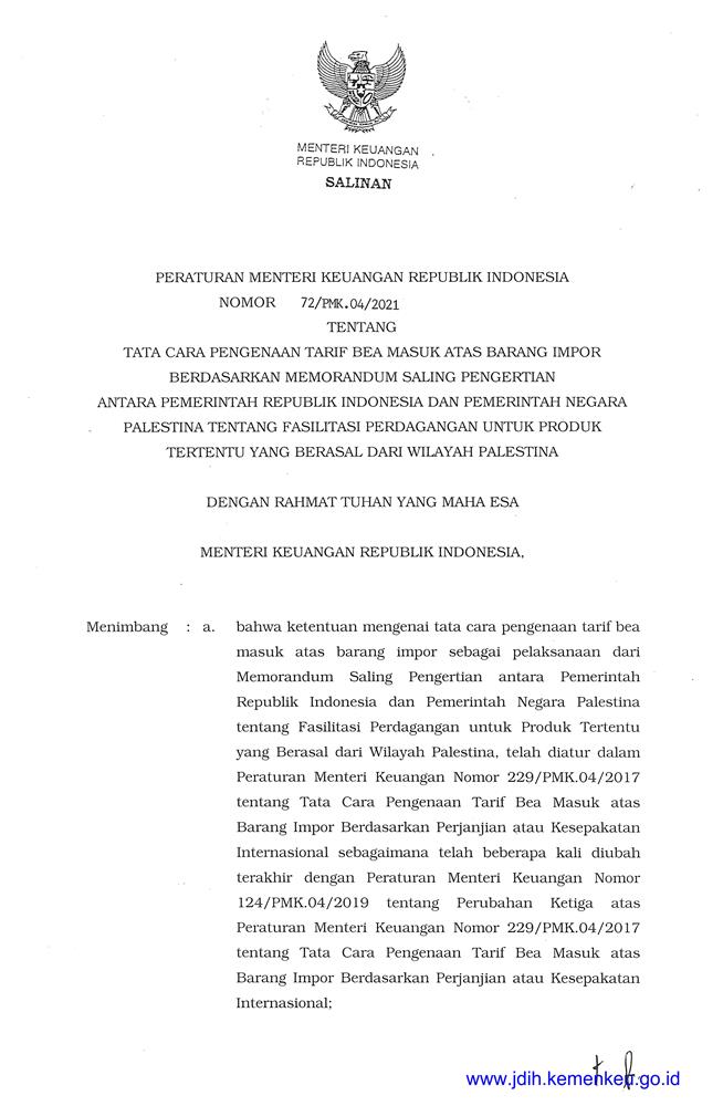 PERATURAN MENTERI KEUANGAN REPUBLIK INDONESIA NOMOR 72/PMK.04/2021