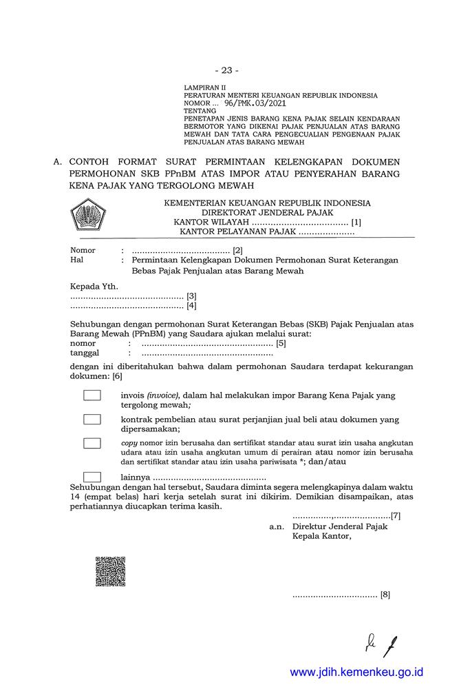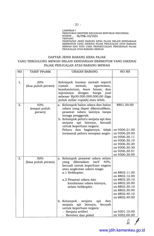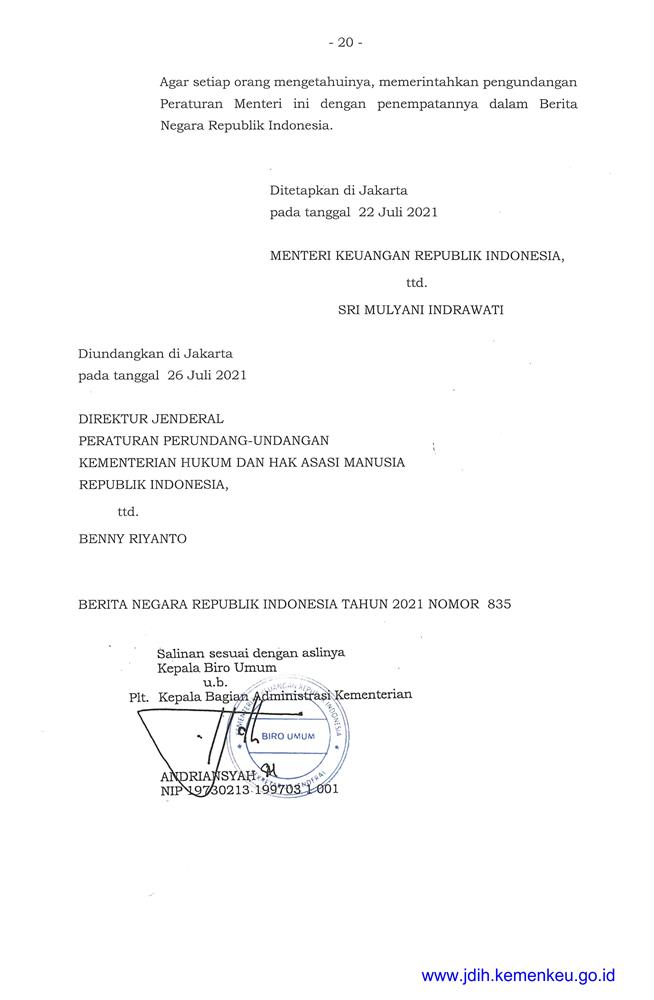PERATURAN MENTERI KEUANGAN REPUBLIK INDONESIA NOMOR 96/PMK.03/2021