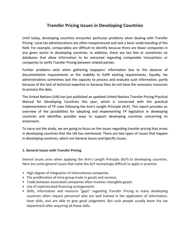 Transfer Pricing Issues In Developing Countries