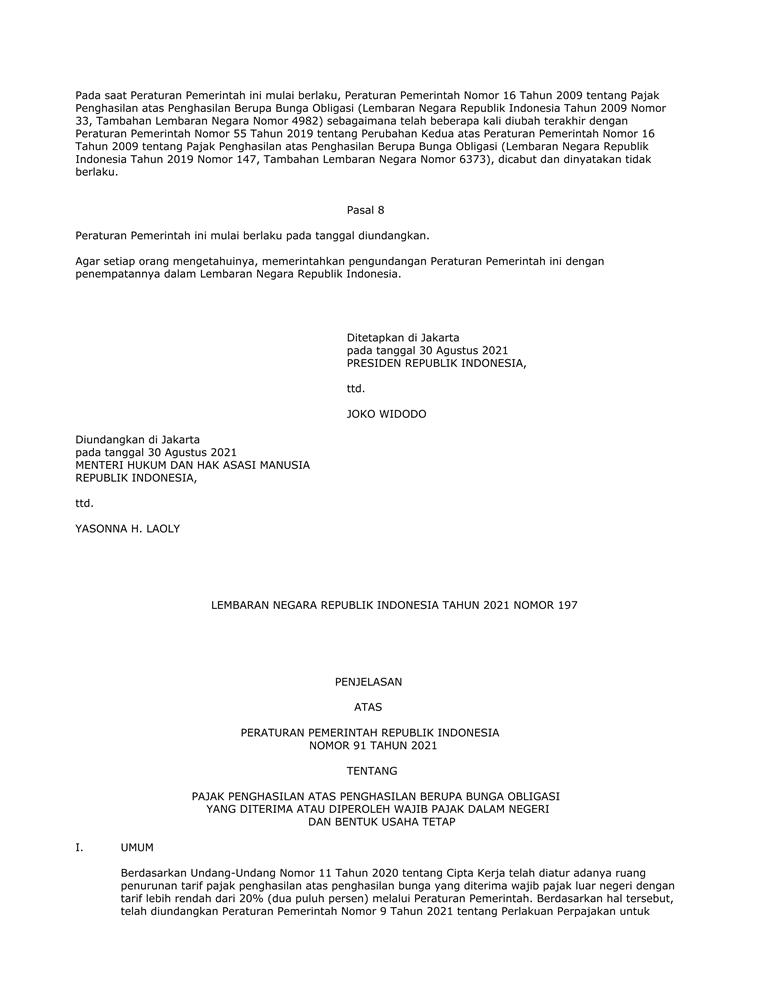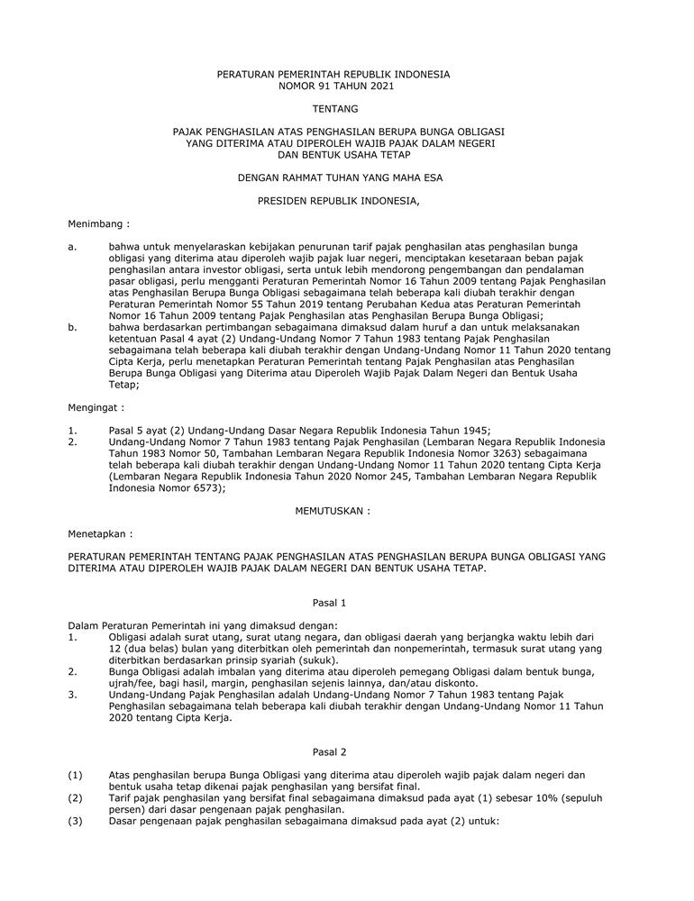 PERATURAN PEMERINTAH REPUBLIK INDONESIA NOMOR 91 TAHUN 2021