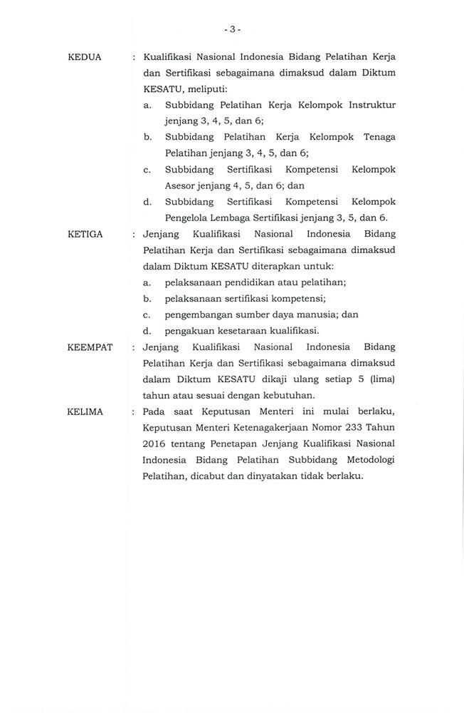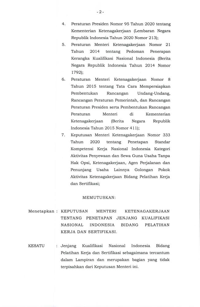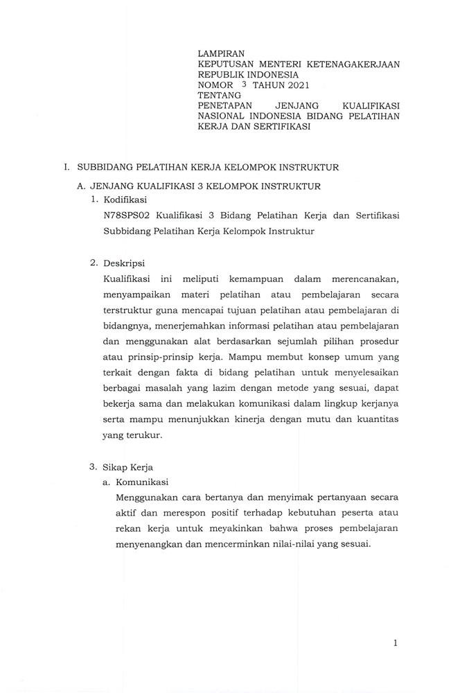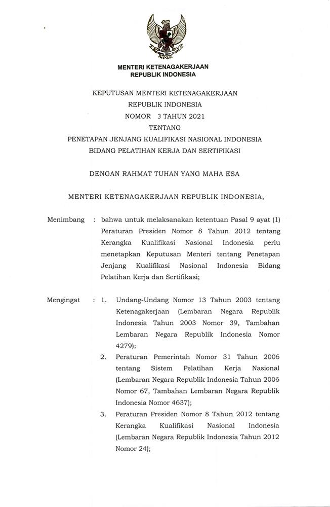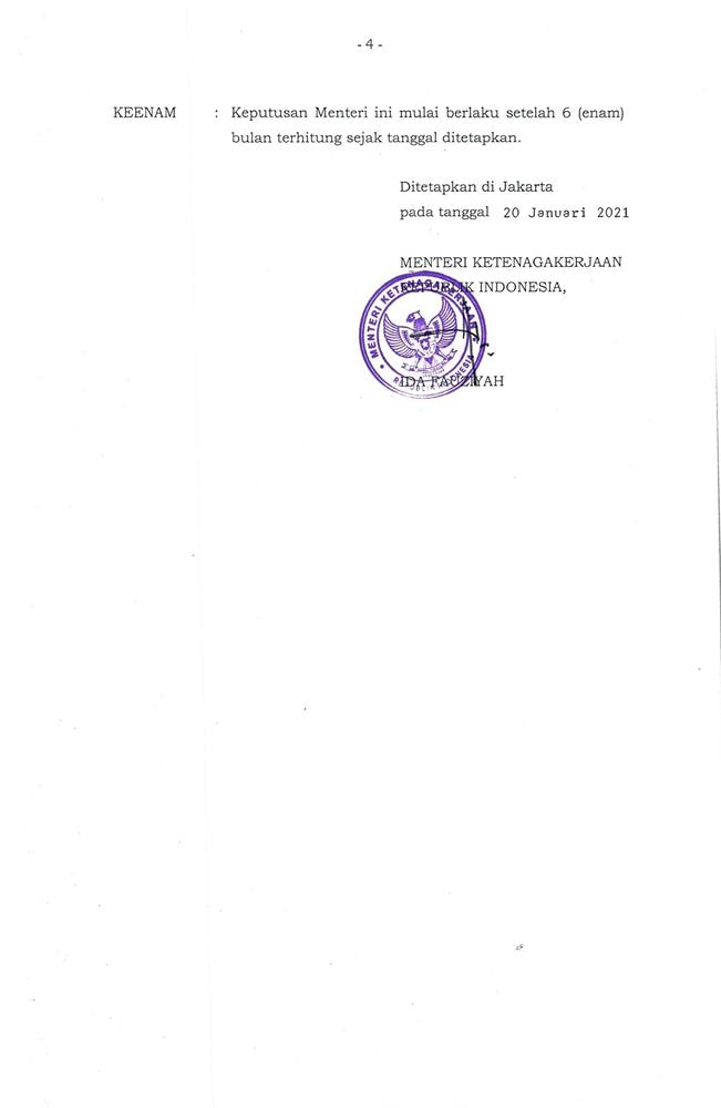 KEPUTUSAN MENTERI KETENAGAKERJAAN REPUBLIK INDONESIA NOMOR 3 TAHUN 2021