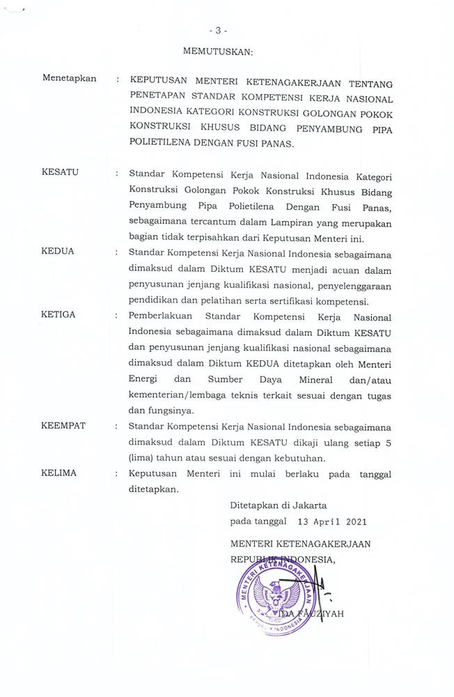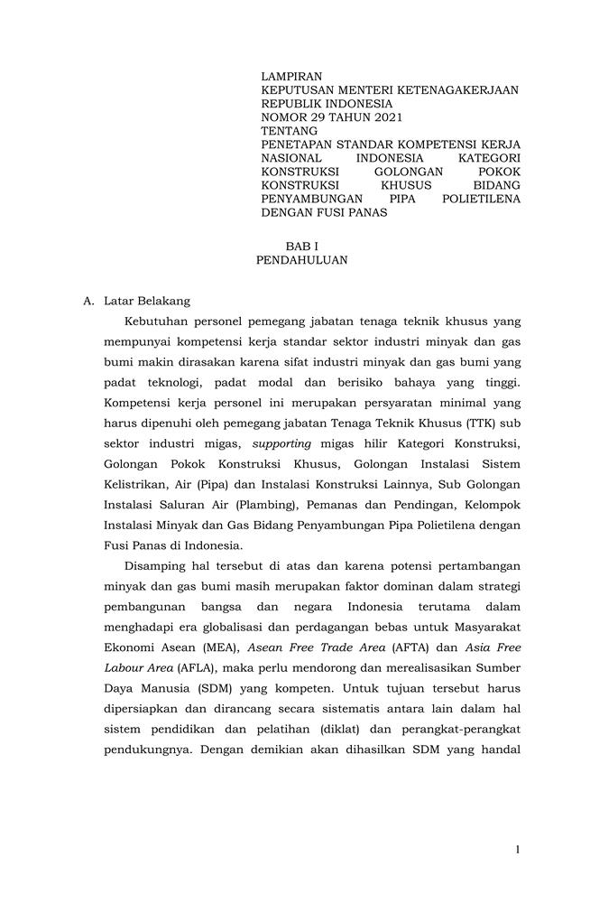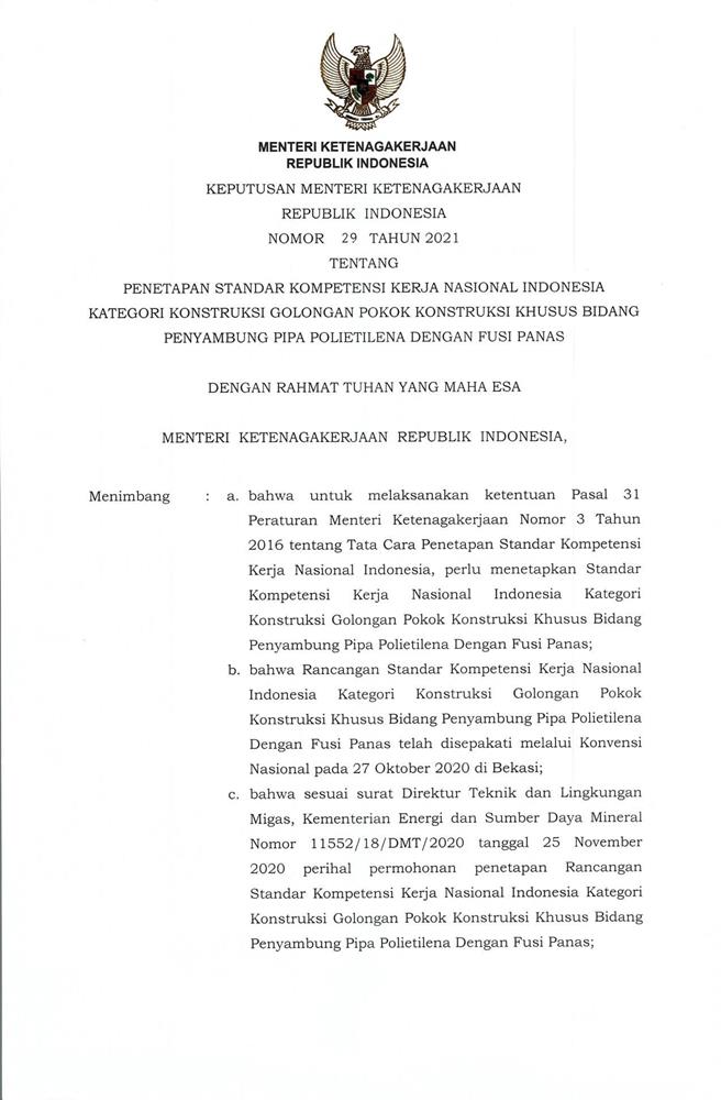KEPUTUSAN MENTERI KETENAGAKERJAAN REPUBLIK INDONESIA NOMOR 29 TAHUN 2021