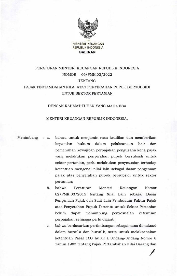 Home > Perpajakan > Peraturan > Pajak Peraturan > PMK No. 66 Tahun 2022