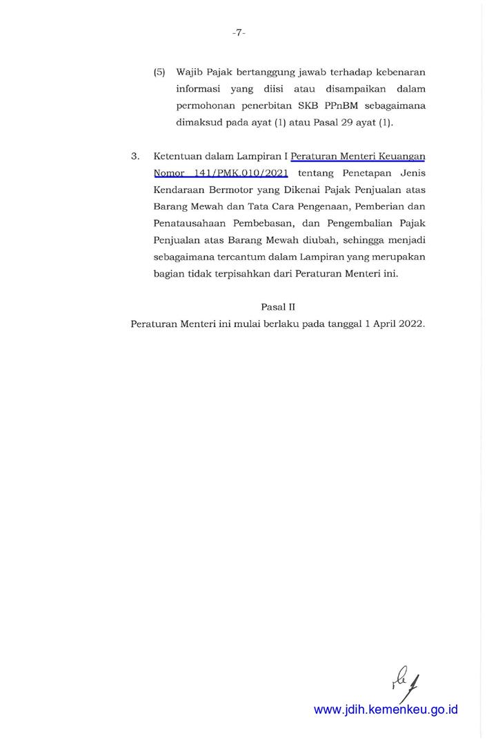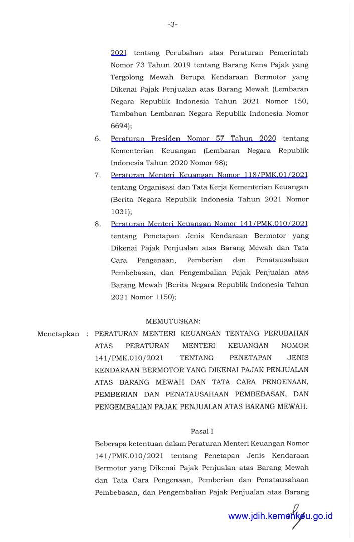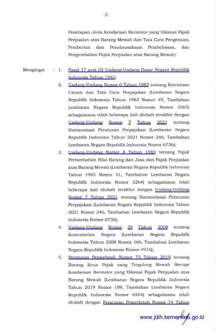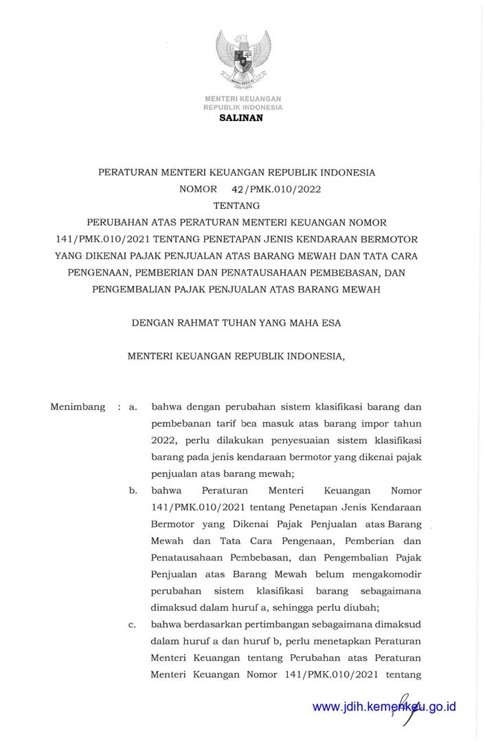 PMK 42 PMK 010 2022 Perubahan PMK 141 PMK 010 2021 Penetapan Jenis Kendaraan Bermotor yang Dikenaik PPnBM & Tata Cara Pengenaan Pemberian & Penatausahaan Pembebasan & Pengembalian PPnBM
