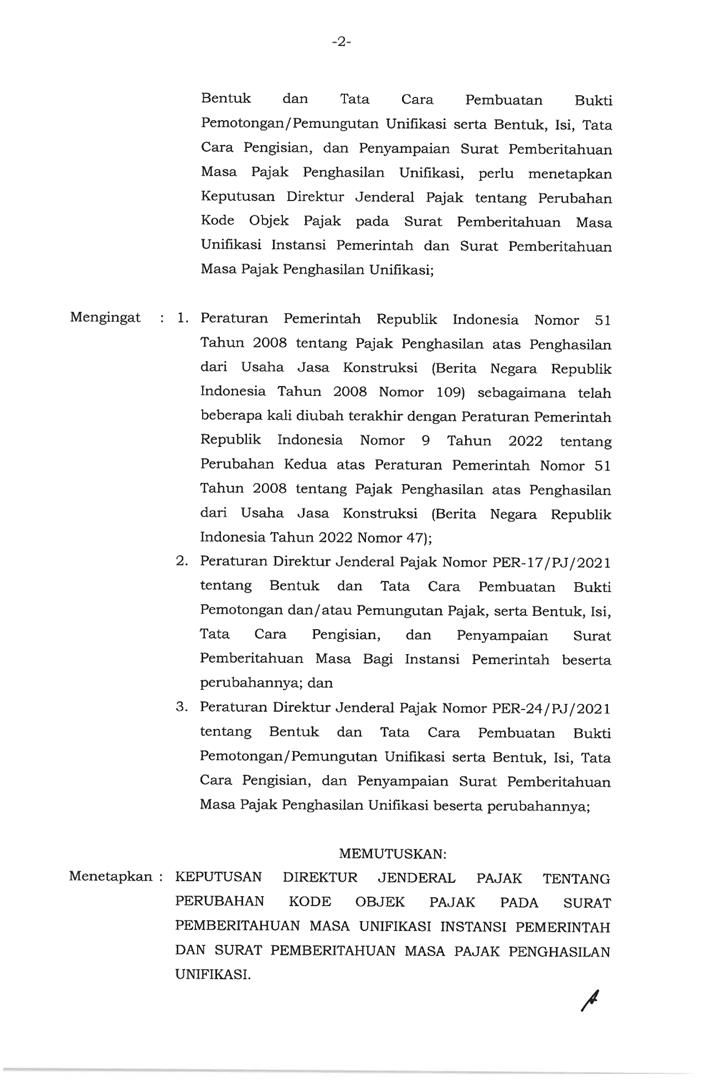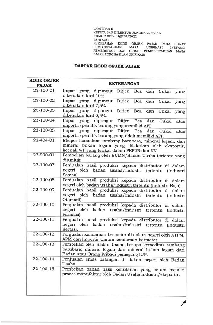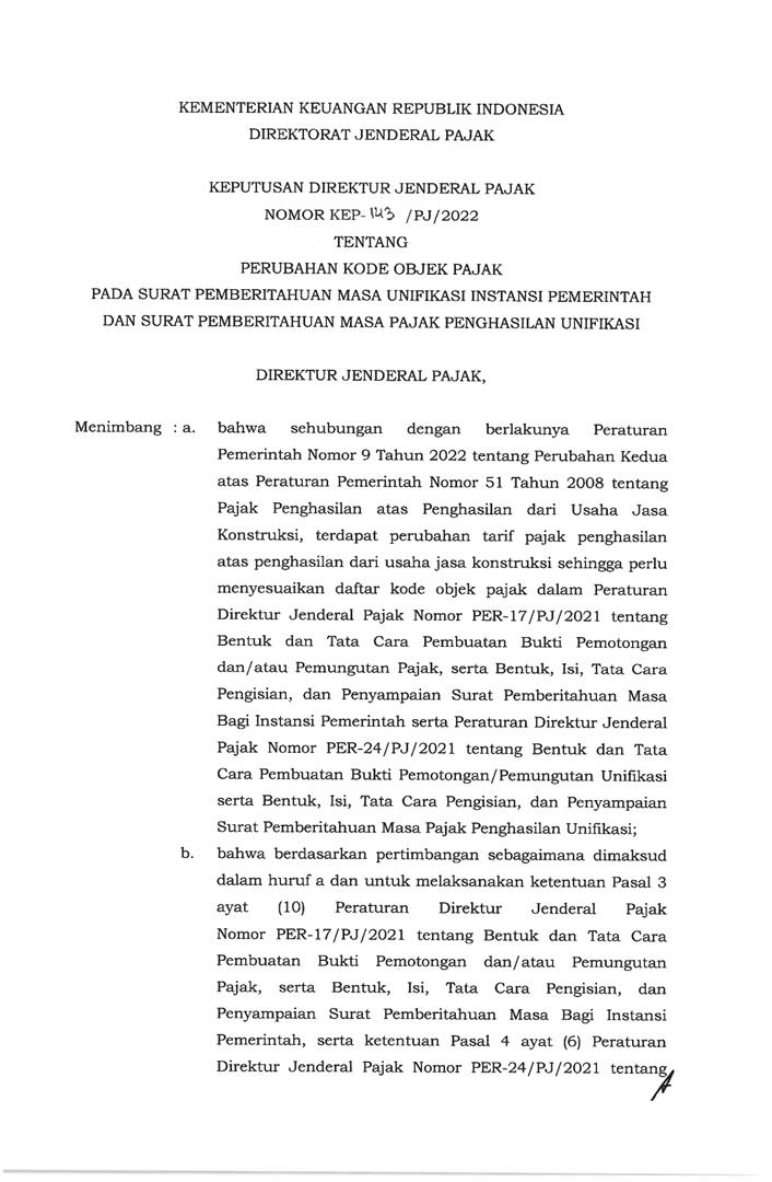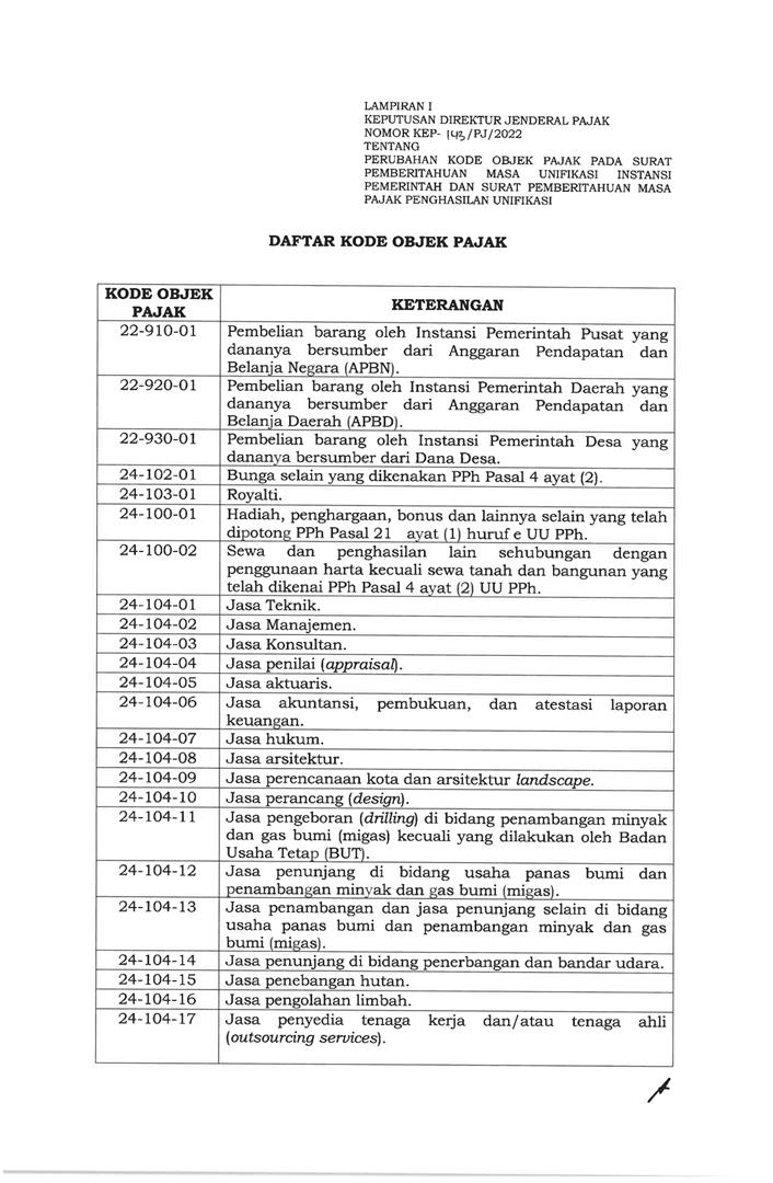 KEP/143/2022 Perubahan Kode Objek Pajak SPT Unifikasi