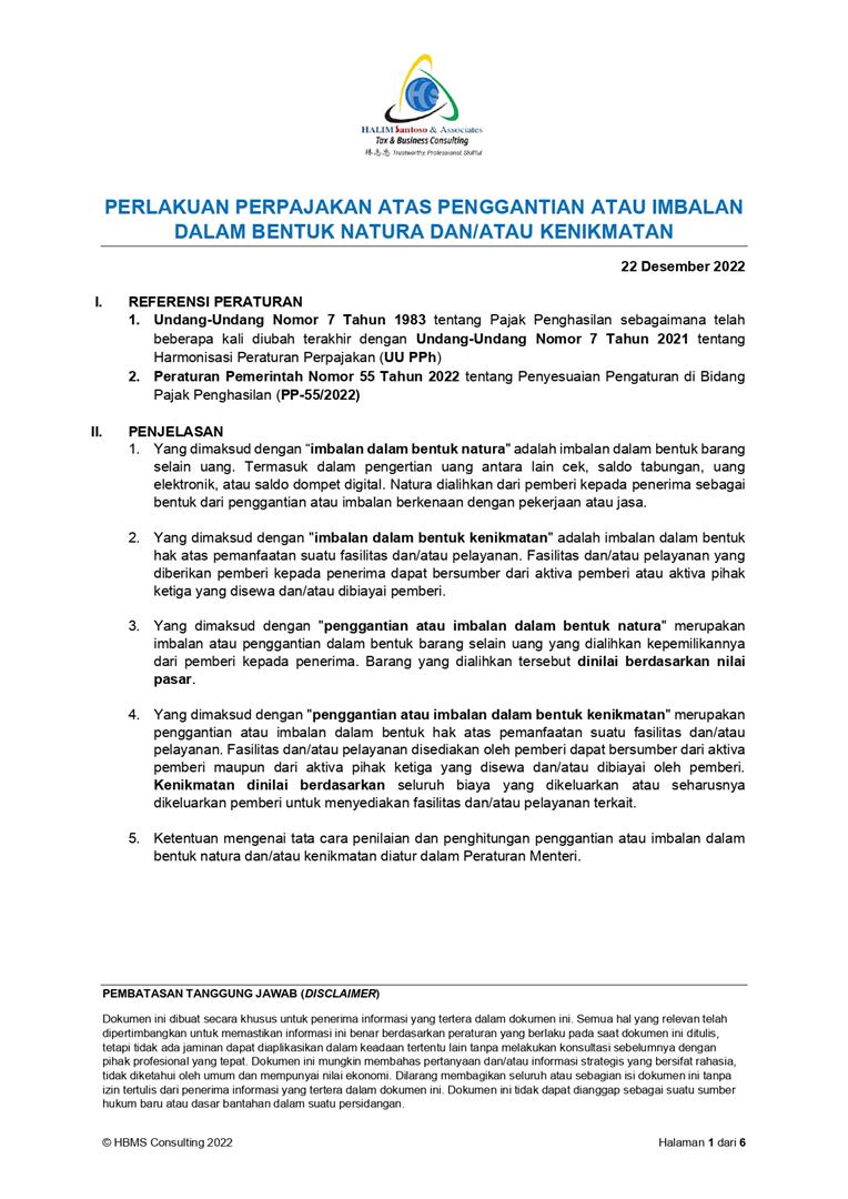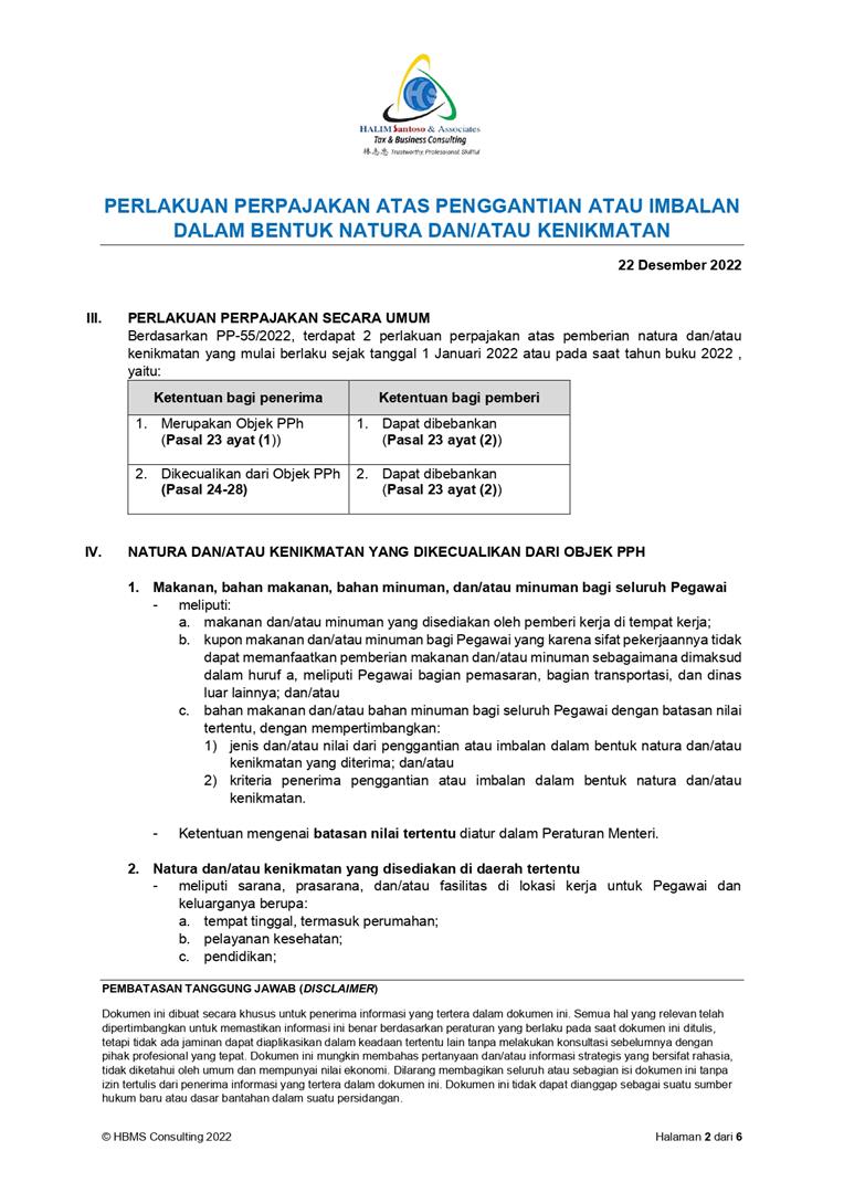 Perlakuan Perpajakan atas Natura dan Kenikmatan mulai tahun 2022