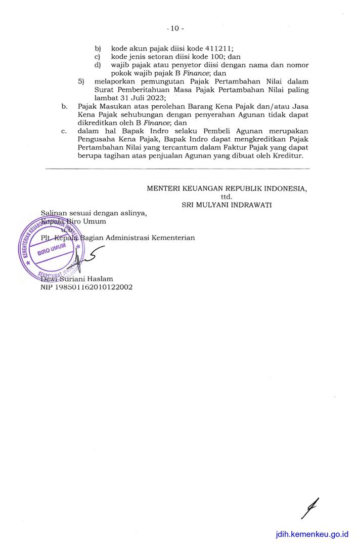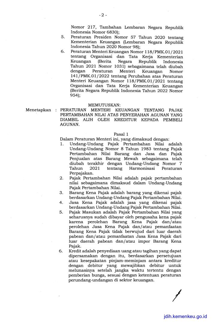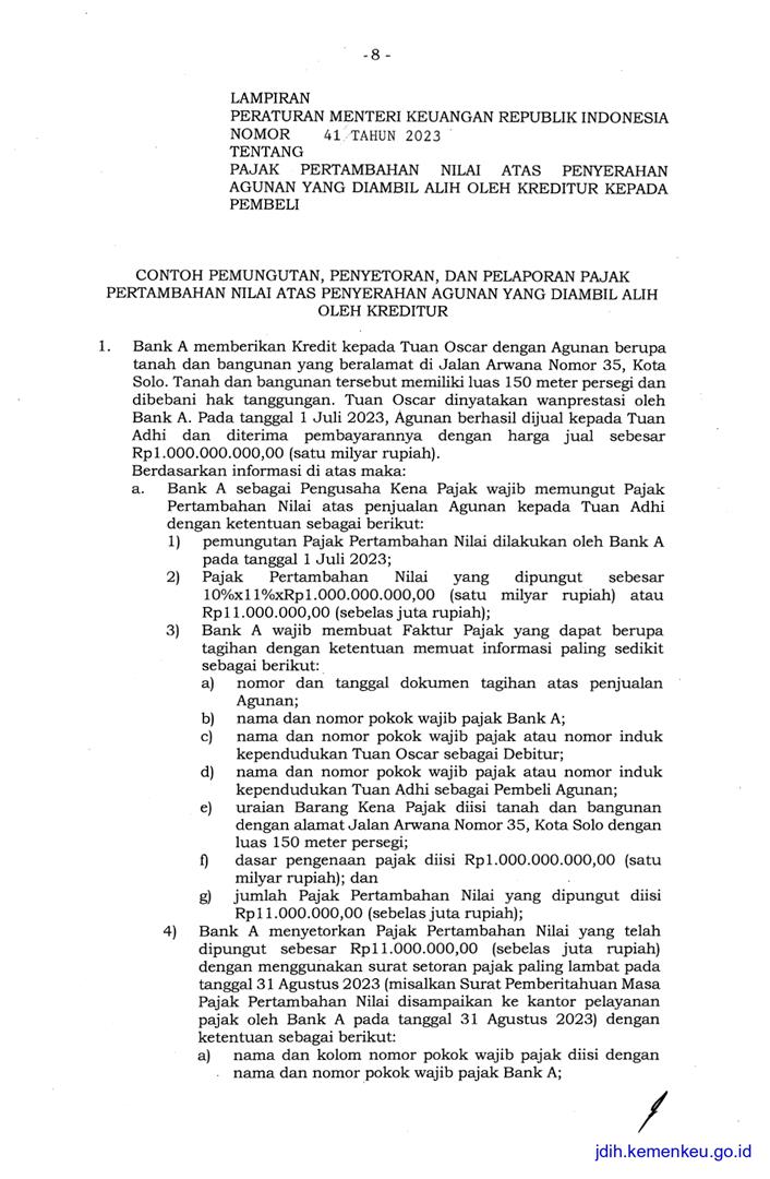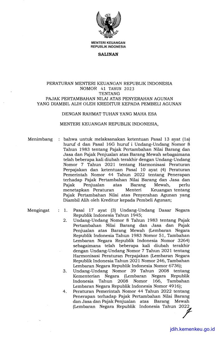 PMK 41 TAHUN 2023 PPN Atas Penyerahan Agunan Yang Diambil Alih Oleh Kreditur Kepada Pembeli Agunan