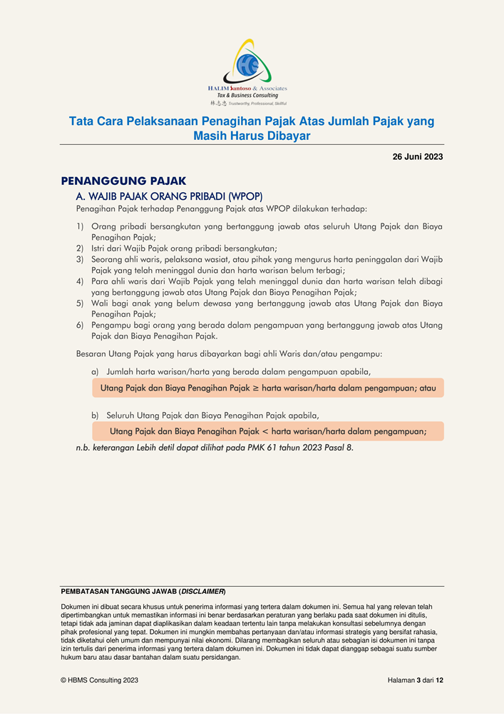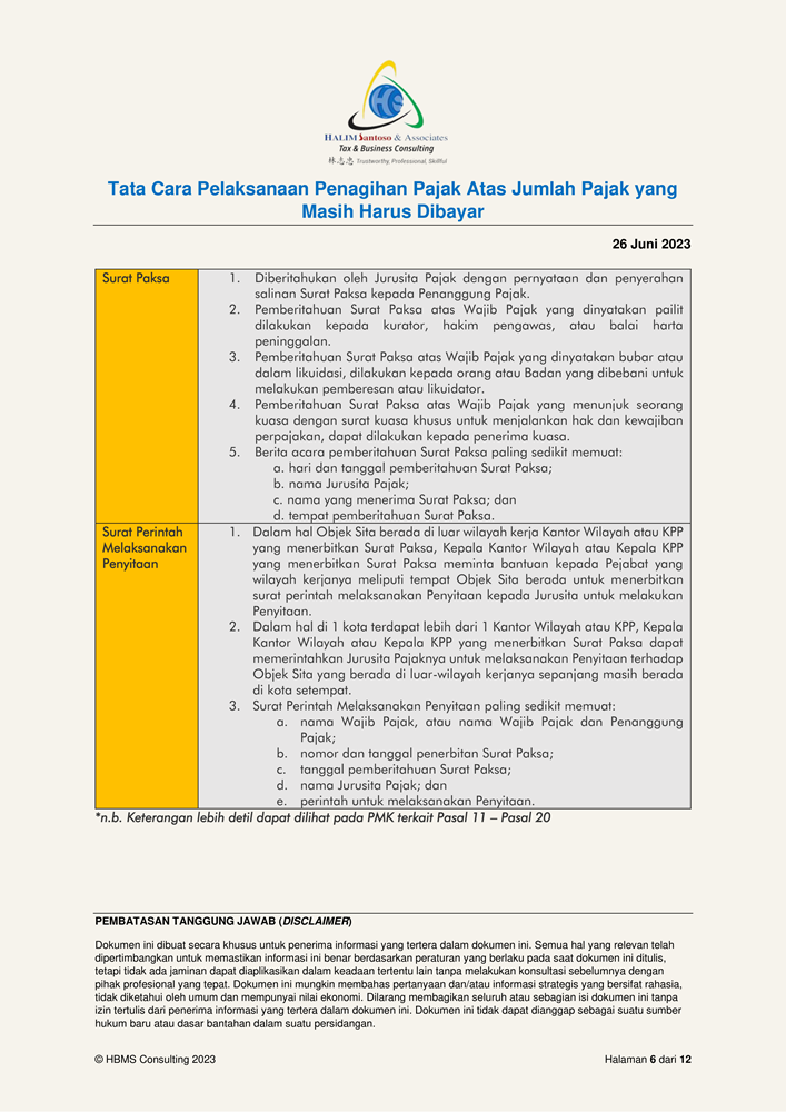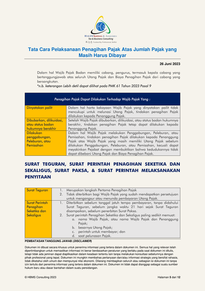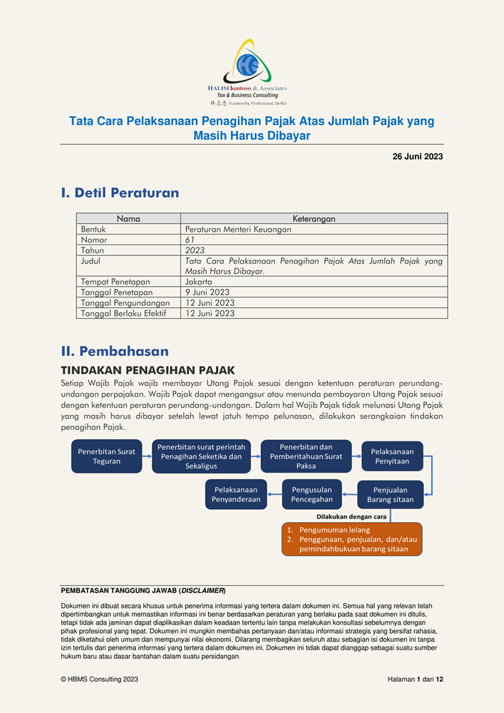 SUMMARY - PMK nomor 61 Tahun 2023 Tata Cara Pelaksanaan Penagihan Pajak Atas Jumlah Pajak Yang Masih Harus Dibayar