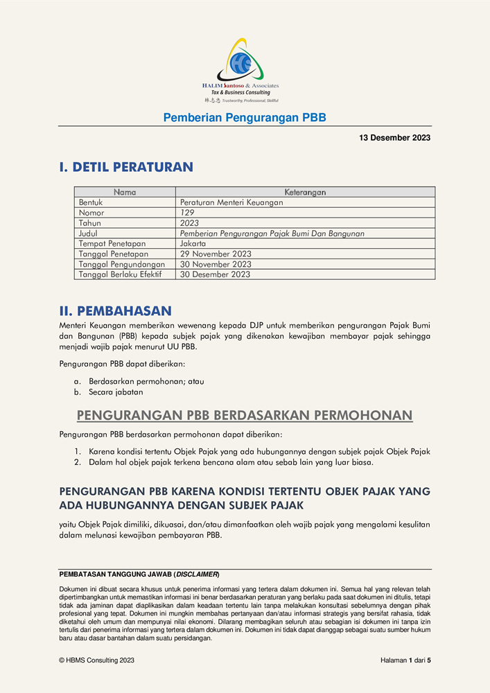 Summary PMK 129 Tahun 2023 Pengurangan PBB