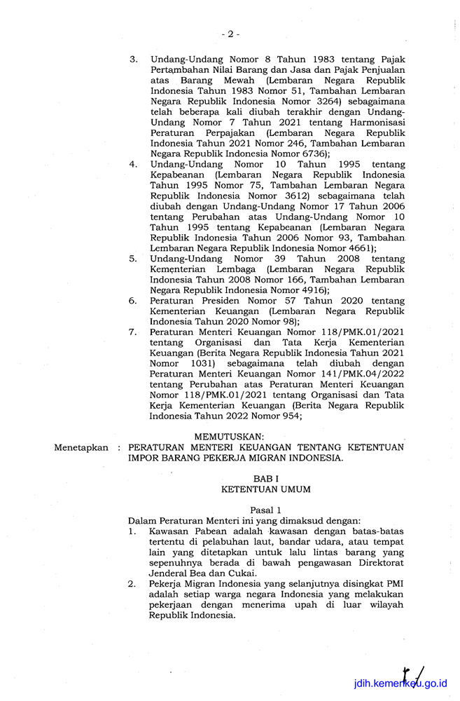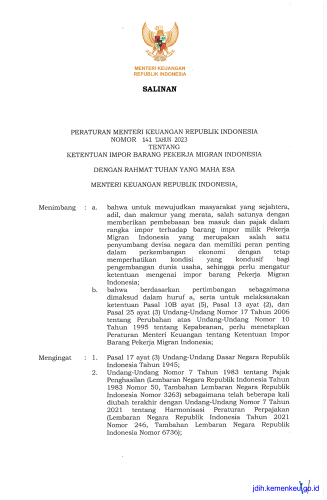 PMK 141 Tahun 2023 Ketentuan Impor Barang Pekerja Migran Indonesia