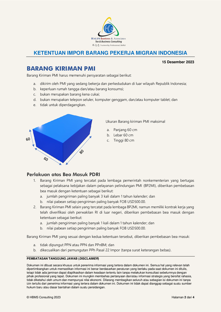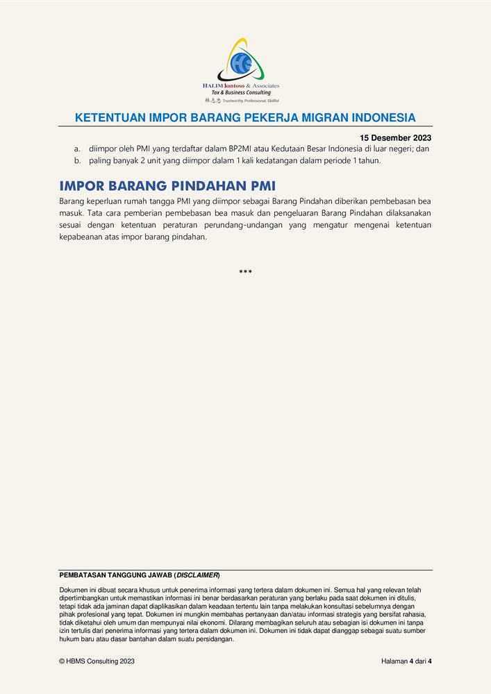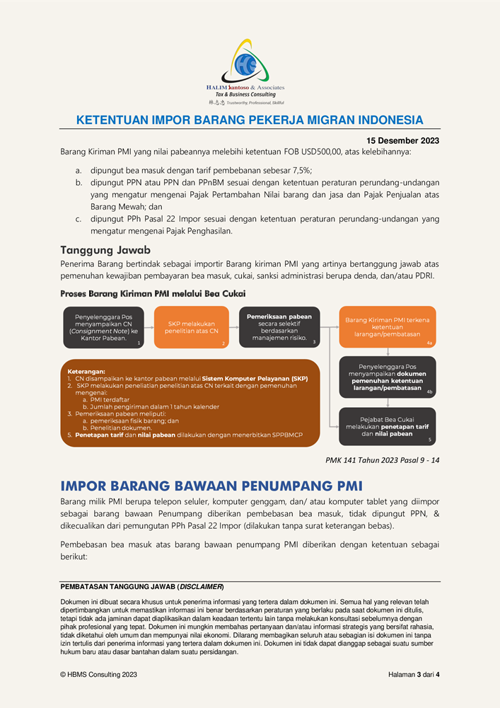 Summary - PMK 141 Tahun 2023 Ketentuan Impor Barang Pekerja Migran Indonesia