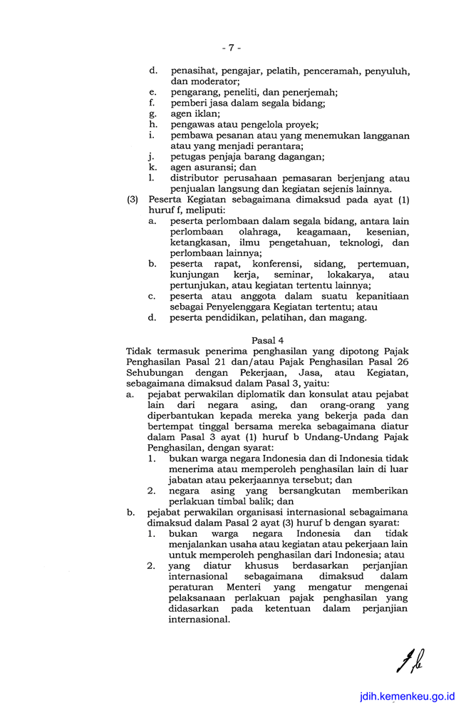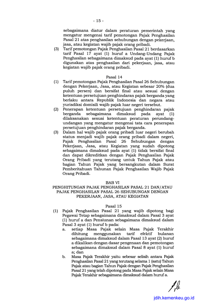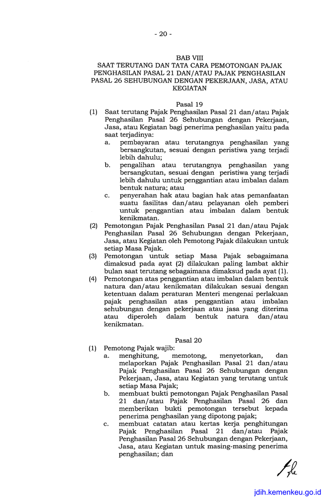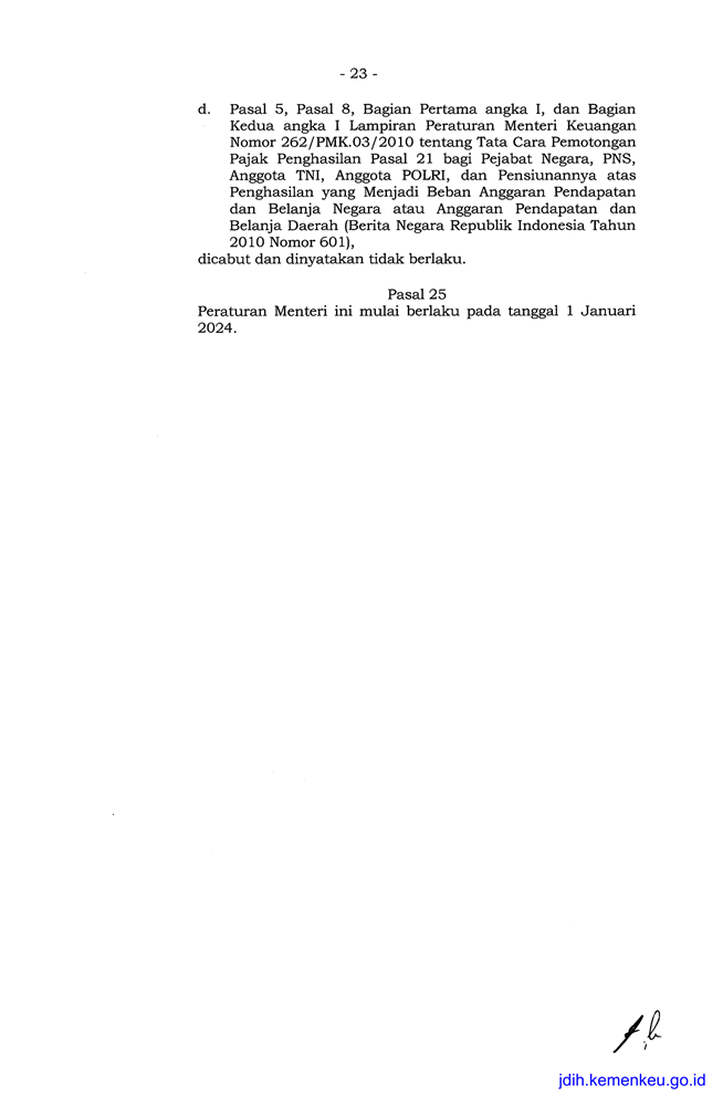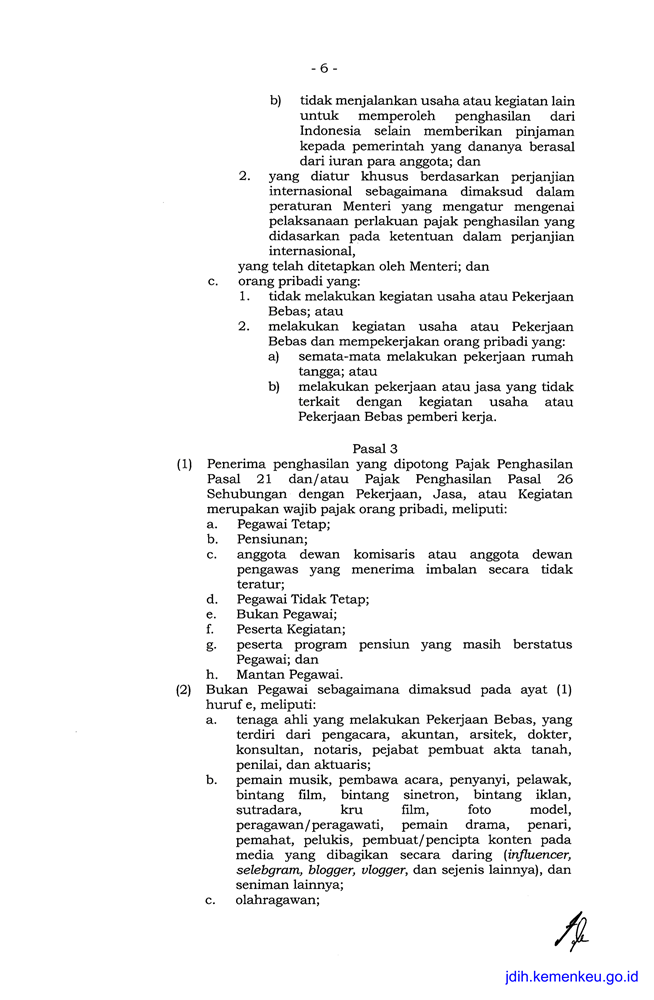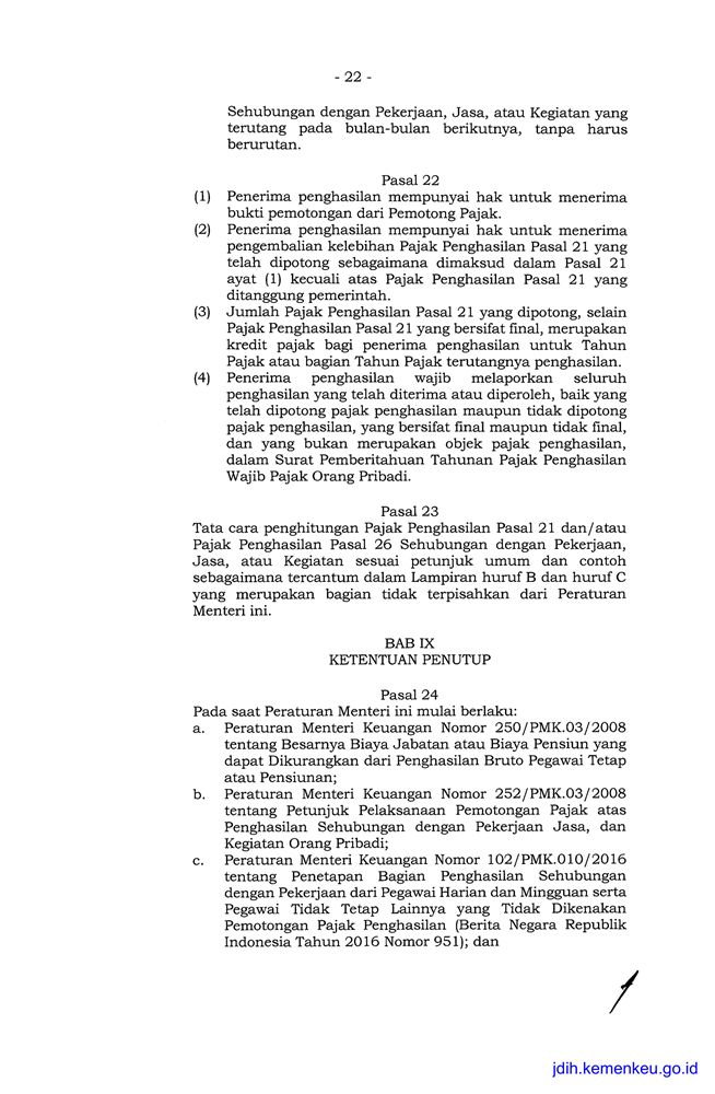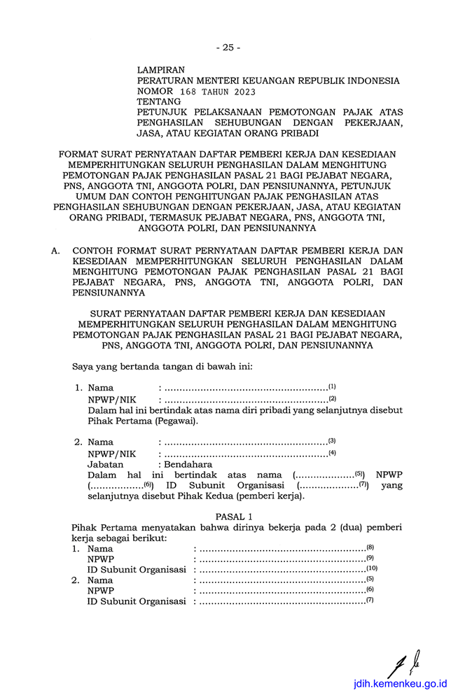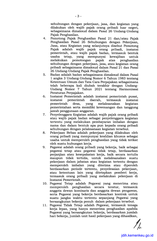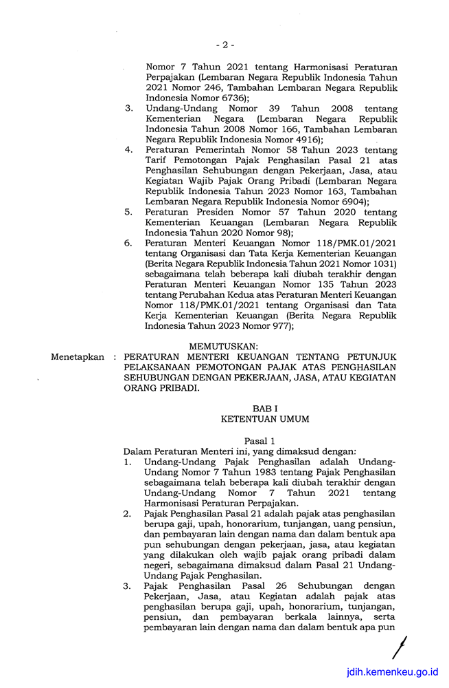 PMK 168 Tahun 2023 Petunjuk Pelaksanaan Pemotongan Pajak atas Penghasilan Sehubungan dengan Pekerjaan, Jasa, atau Kegiatan Orang Pribadi