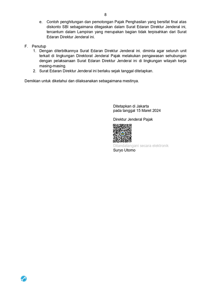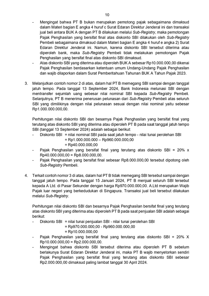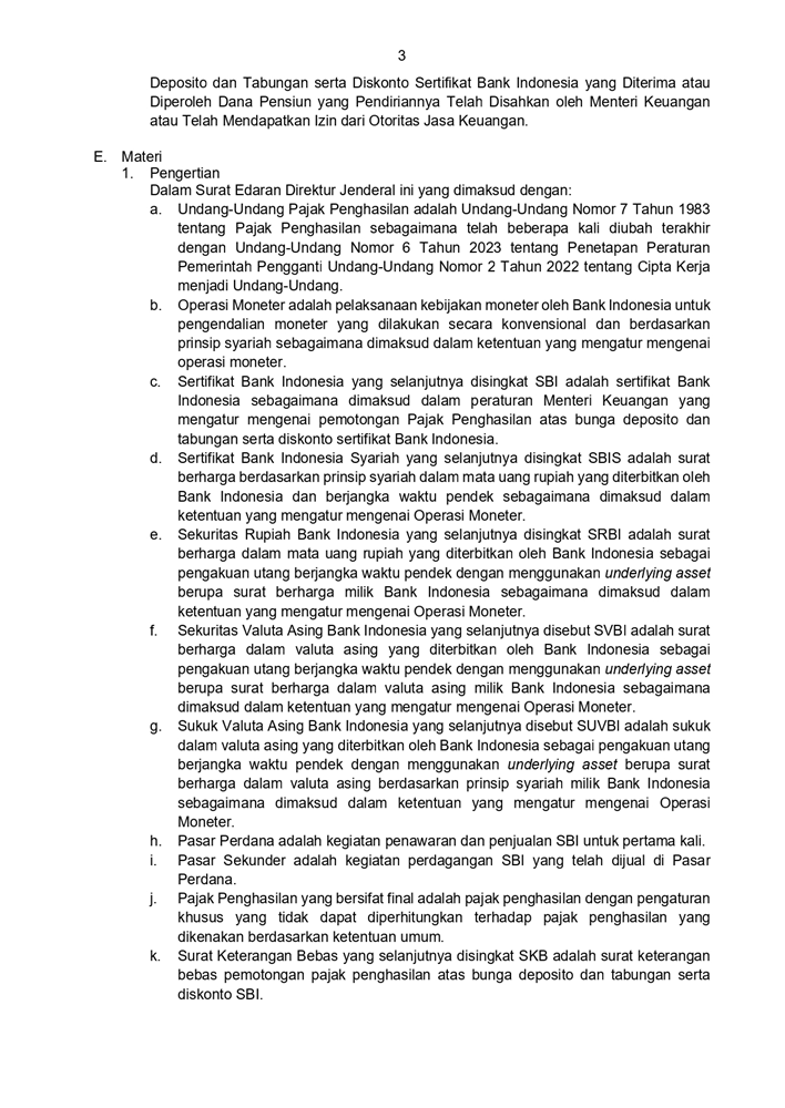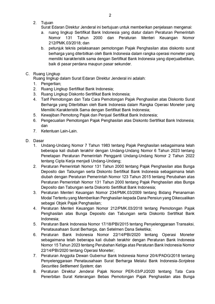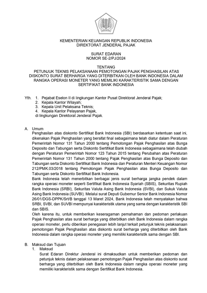 SE-2 PJ 2024 PETUNJUK TEKNIS PELAKSANAAN PEMOTONGAN PAJAK PENGHASILAN ATAS DISKONTO SURAT BERHARGA YANG DITERBITKAN OLEH BANK INDONESIA DALAM RANGKA OPERASI MONETER YANG MEMILIKI KARAKTERISTIK SAMA DENGAN SERTIFIKAT BANK INDONESIA