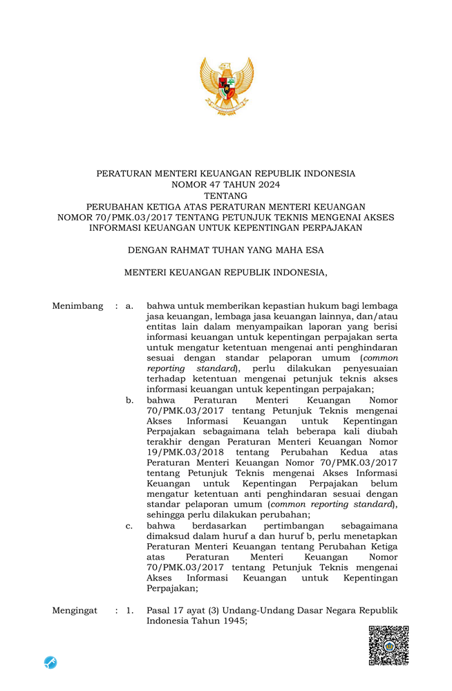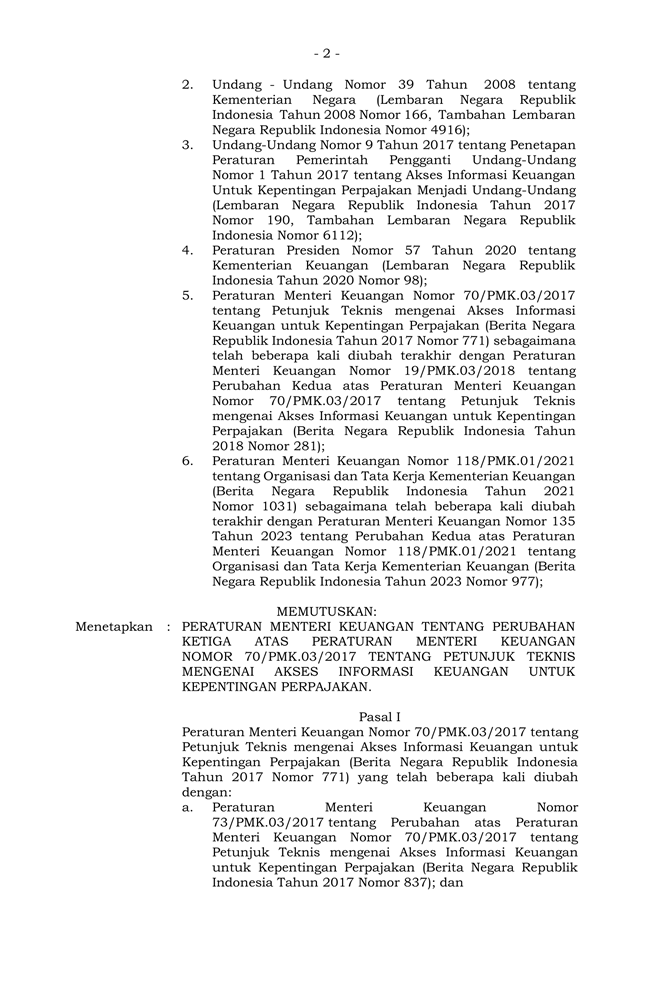 PMK 47 Tahun 2024 tentang Perubahan Ketiga PMK 70 PMK.03 2017 tentang Petunjuk Teknis mengenai Akses Informasi