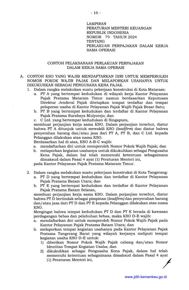 PMK 79 Tahun 2024 tentang Perlakuan Perpajakan Dalam Kerja Sama Operasi