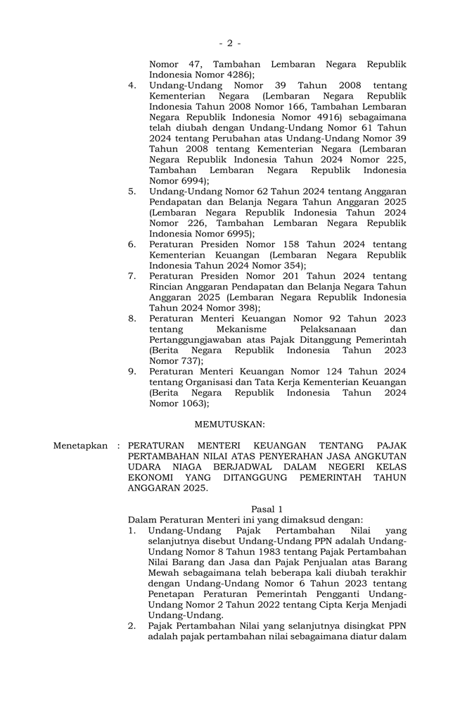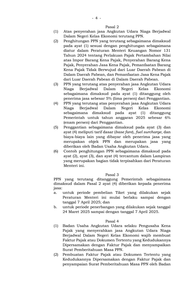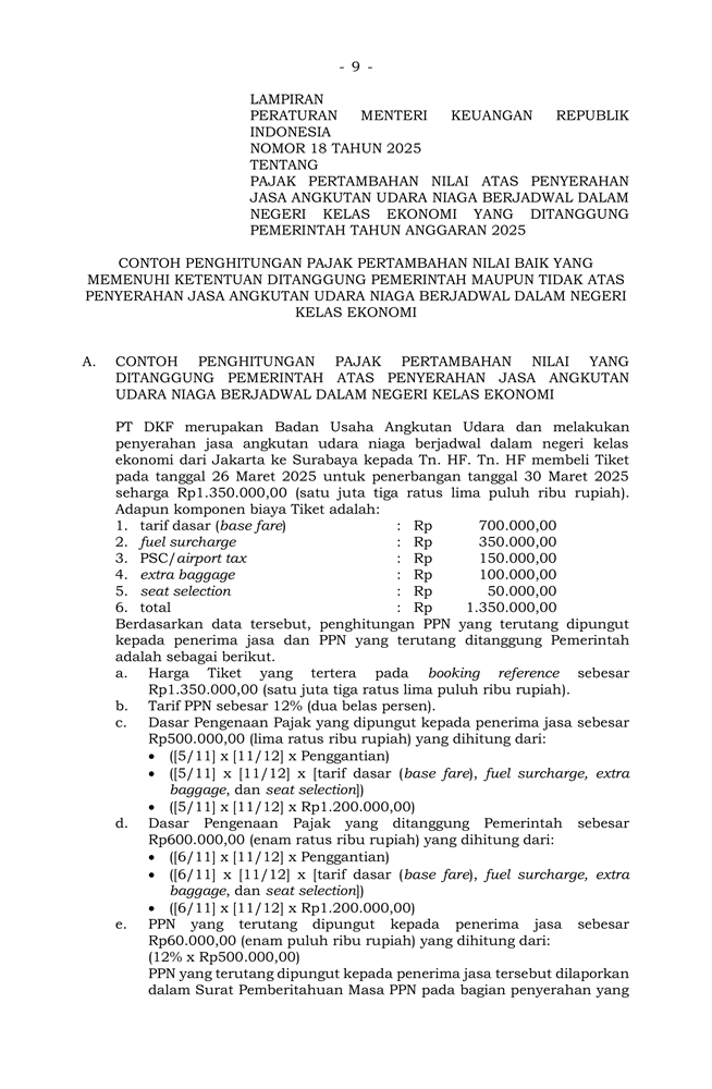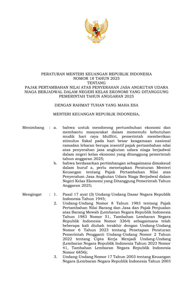 PMK 18 Tahun 2025 PPN DTP Jasa Angkutan Udara Niaga Berjadwal DN Kelas Ekonomi