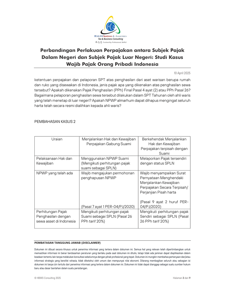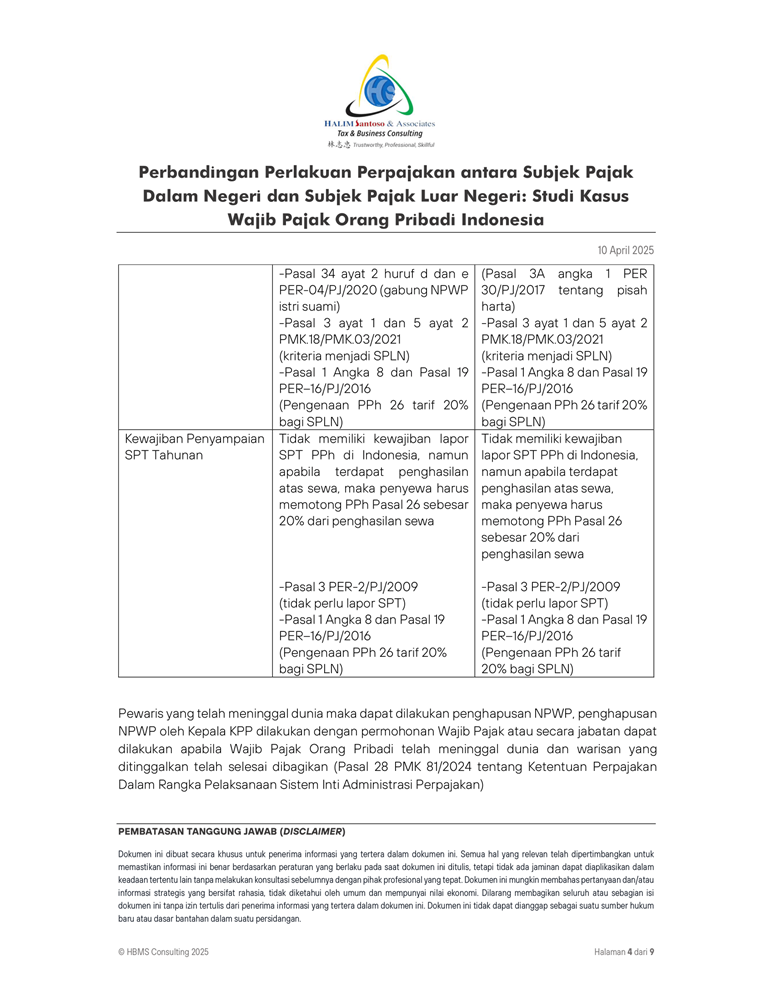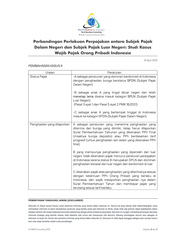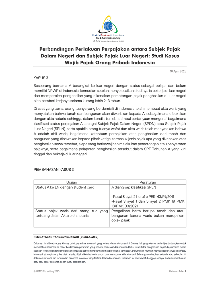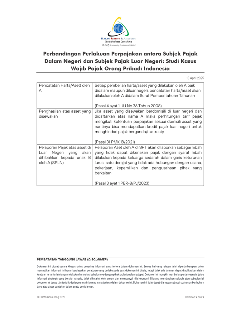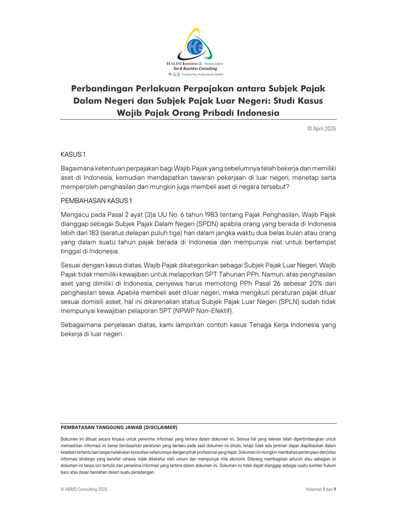 Perbandingan Perlakuan Perpajakan antara Subjek Pajak Dalam Negeri dan Subjek Pajak Luar Negeri Studi